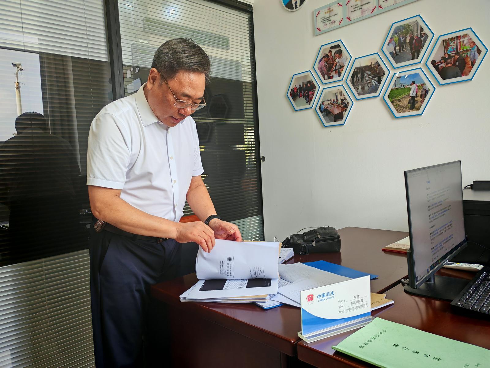 陈进正在整理卷宗,他有着30多年丰富的调解经验,退休后,被镇综治中心聘为专职调解员,并成立陈进调解工作室。“这是一起工程款纠纷案,涉及4人,尚有13.83万元工资一直被拖欠。7月21日,我出面调解。最终被申请人约定还款时间,申请人承诺不再有过激行为。双方签订人民调解协议书,并通过司法确认。”陈进翻开卷宗说,今年上半年他已经调解了45起,涉及婚姻家庭、邻里之间、人身赔偿等方面的纠纷。