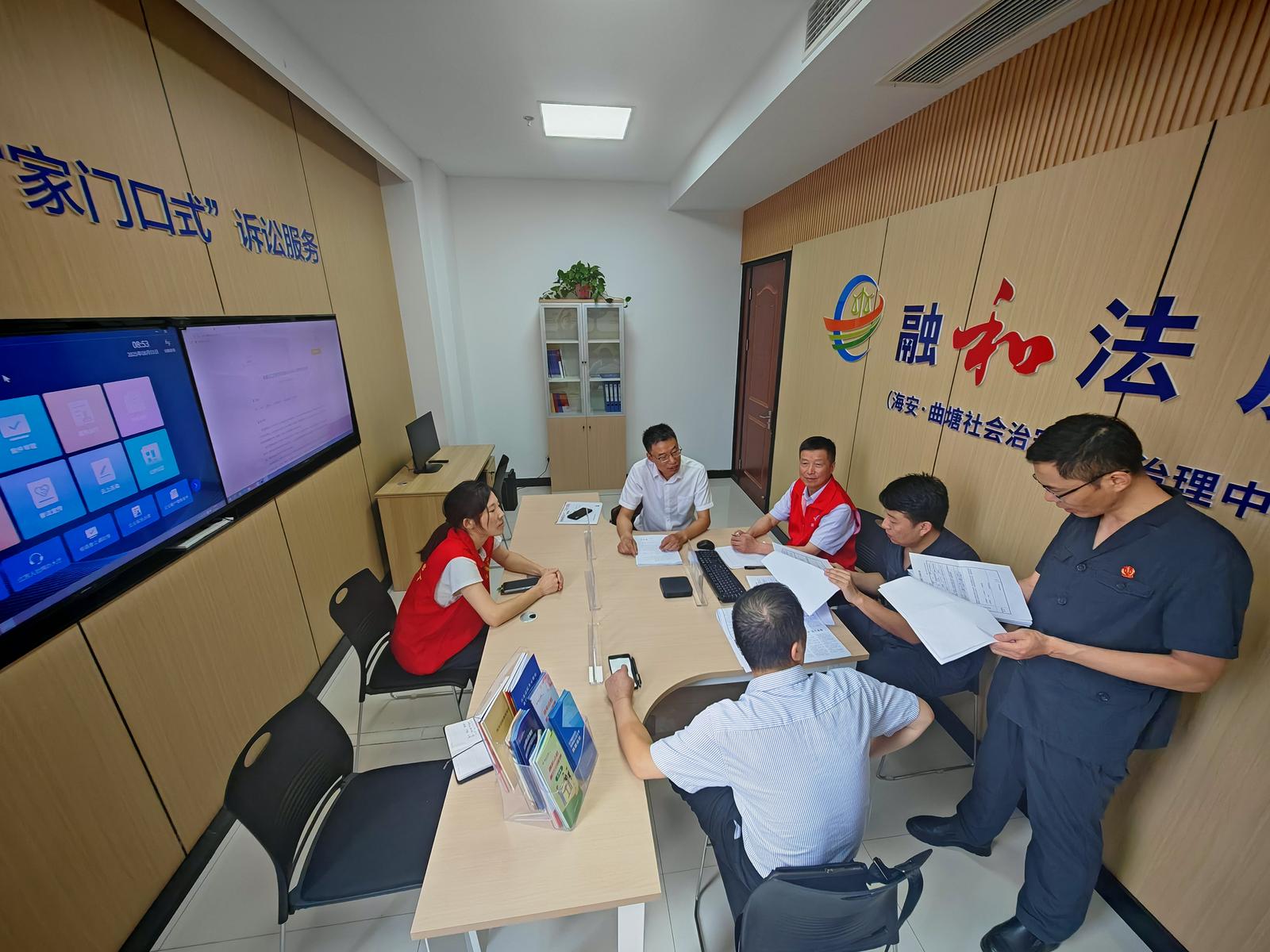 融和法庭里,正在调解一起健康权纠纷案,患者、医院、法院、镇调解员等多方代表坐在一起。正在参与调解的曲塘法庭法官助理尚俊说,这是将司法力量深度融入基层社会治理体系,成为矛盾纠纷化解的“前哨”。