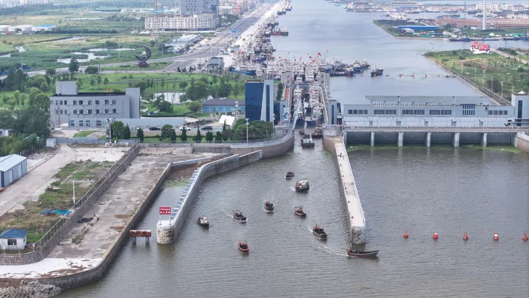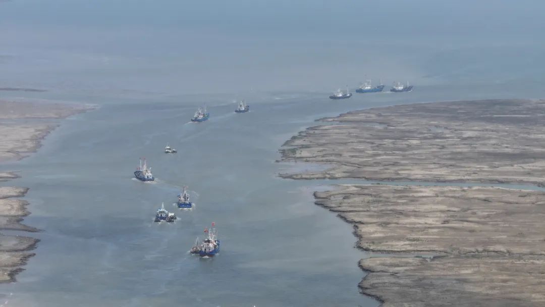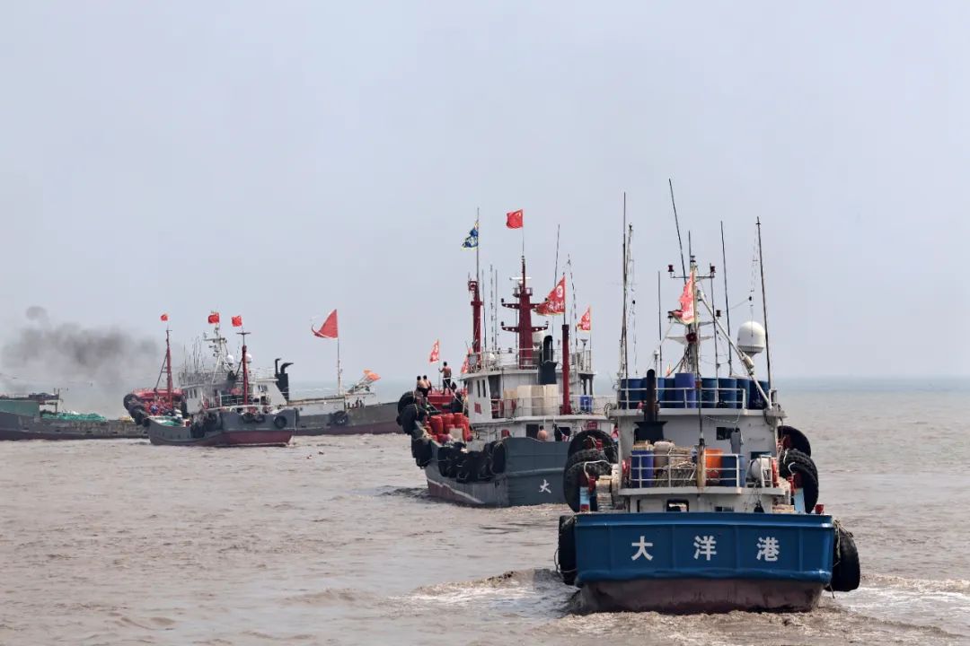 今天中午,随着一声汽笛响起,停泊在如东洋口国家中心渔港港池内,符合“小开渔”开捕条件的200余艘渔船纷纷拔锚启航,顺着潮水鱼贯而出,奔赴“蓝色牧场”。