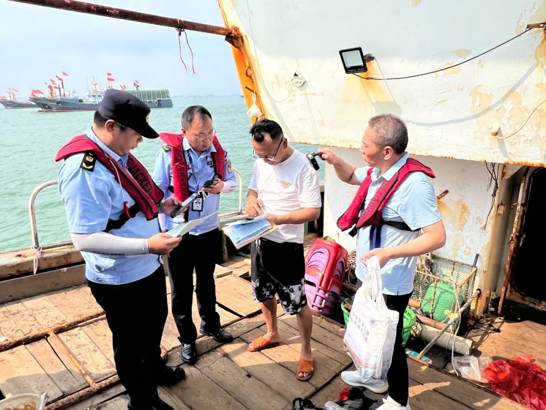 当天,一艘艘专项捕捞渔船满载着生活用品准备出海,执法人员登船仔细检查渔船的进出港报告、职务船员配备、船员持证等情况,同时,重点核查渔船的消防、救生、通讯、导航特别是甚高频(VHF)等安全设备是否配备齐全有效,全面排查可能存在的安全隐患,切实保障渔民的生命财产安全和海上渔业生产秩序。