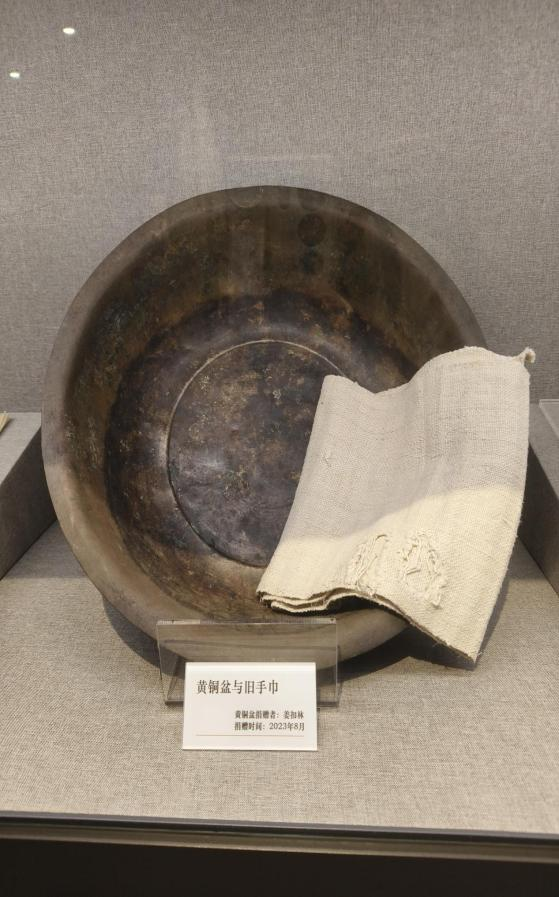 如东县革命烈士陵园所藏黄铜盆与旧手巾↑