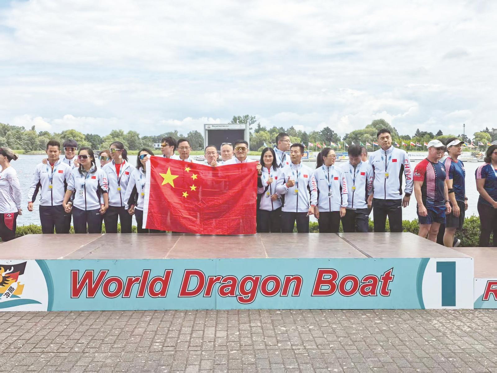 On 18th July, in the 200-meter senior team A mixed small dragon boat straight route race, the China team won the gold medal with a result of 52.63 seconds, which created a new record for the China team in this event. On 19th July, in the 500-meter senior team B mixed small dragon boat straight route race, the China team won a bronze medal with a result of 2 minutes 23.87 seconds. On 20th July, in the 500-meter senior team A mixed small dragon boat straight route race, the China team won a silver medal with a result of 2 minutes 19.85 seconds, only 0.02 seconds slower than the champion, the Canada team.