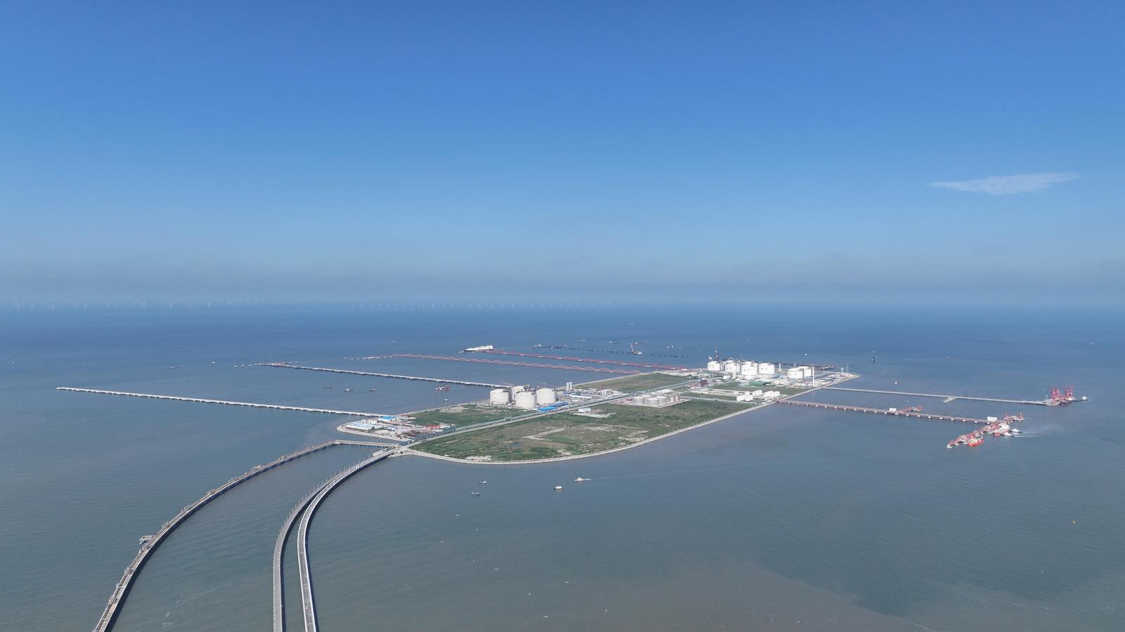 隔海相望的阳光岛上,正在建设中的江苏LNG项目三期配套码头未来将服务两座海上能源枢纽;通用码头“洋太”航线周五班列常态化运行;液化品码头以近乎一天一船的运转节奏,全面释放“产业港”功能。