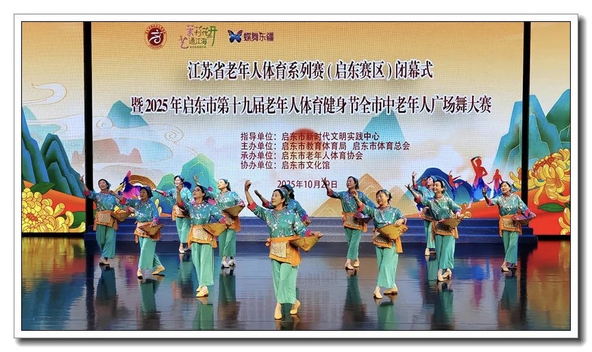 10月29日,江苏省老年人体育节(启东赛区)闭幕式暨启东市第19届老年人体育健身节广场舞大赛在启东市文化馆激情上演。来自全市的50支〔其中3支是展演舞,1支是集体舞〕中老年广场舞队伍同台竞演,以饱满的热情和精彩的舞姿,为持续近7个月的健身节画上圆满句号。