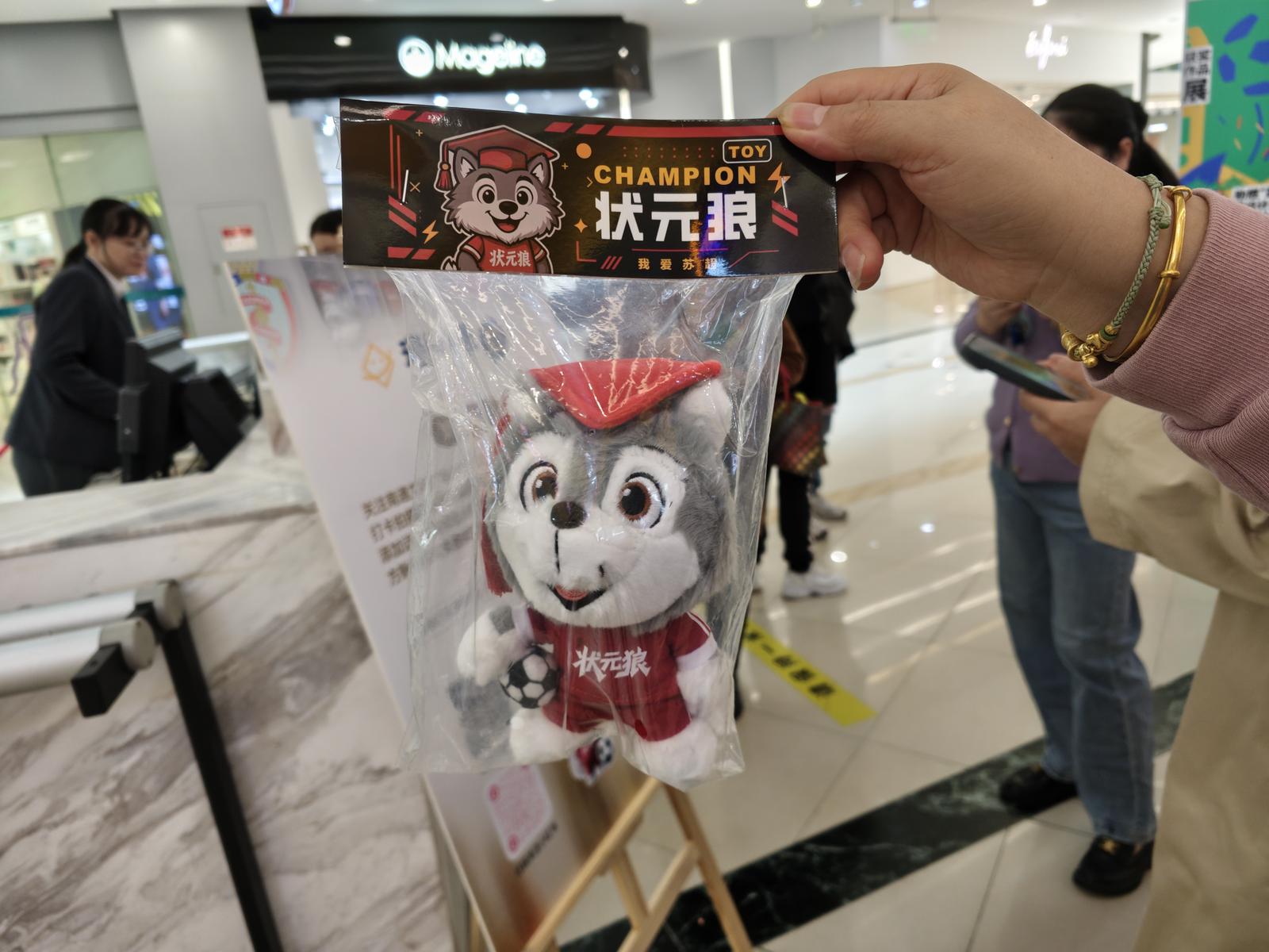 在文峰广场新开张的“珂缔缘”首店,刚结完账的陈女士姐妹俩,正拿着新入手的“状元狼”挂件在店门口拍照留念。她笑着对记者解释:“这是买给我小孙子的,他才26个月。这狼造型可爱又不失威武,上面有挂钩可以挂在书包上,寓意也好,希望他以后学业有成。”小小的挂件,承载的是家人最朴素的祝福。