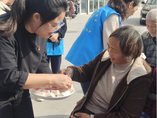 活动伊始,长寿糕分享环节充满温情。石桥村党总支书记王龙妹将精心准备的长寿糕发放到老干部手中,大家共同品尝香甜软糯的糕点,畅谈生活趣事与美好愿景。一块块长寿糕不仅承载着对老干部们健康长寿、生活美满的真挚祝福,更拉近了彼此间的距离,现场氛围欢乐祥和。