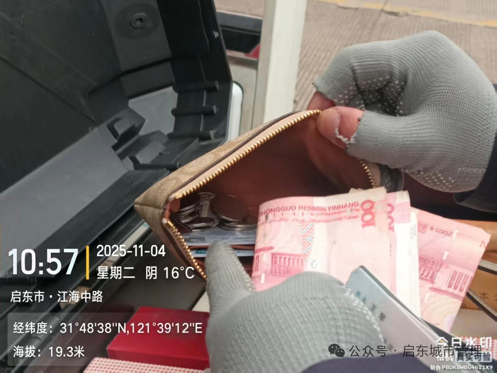 11月4日,启东市区江海中路与金珠巷路口上演了一幕暖心场景:启东市城管协管员顾大捷在日常巡逻中拾获市民遗失的钱包,历经多方周折寻回失主,用实际行动诠释了拾金不昧的传统美德,赢得了市民的由衷点赞。