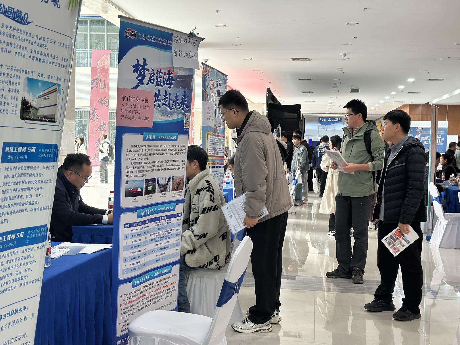 西北工大作为“国防七子”之首,其在航空、航天、航海等战略科技领域优势明显,与我市船舶制造、海工装备等产业人才需求高度契合。近五年,有百余名西工大毕业生选择奔赴南通,我市亦有177名学子考入西工大。当天同步举办的专场招聘会上,我市32家“616”现代产业体系重点企业拿出1200余个优质岗位,涵盖船舶海工、智能制造等领域,最高年薪42万元。
