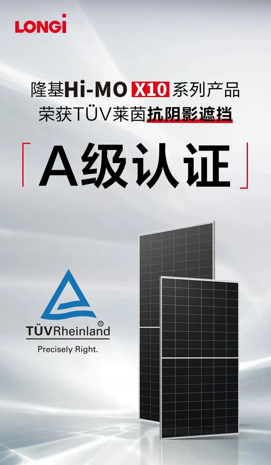 凭借出色的 “防遮挡” 性能,Hi-MO X10“三防组件”已获得TÜV莱茵抗阴影遮挡A级认证。