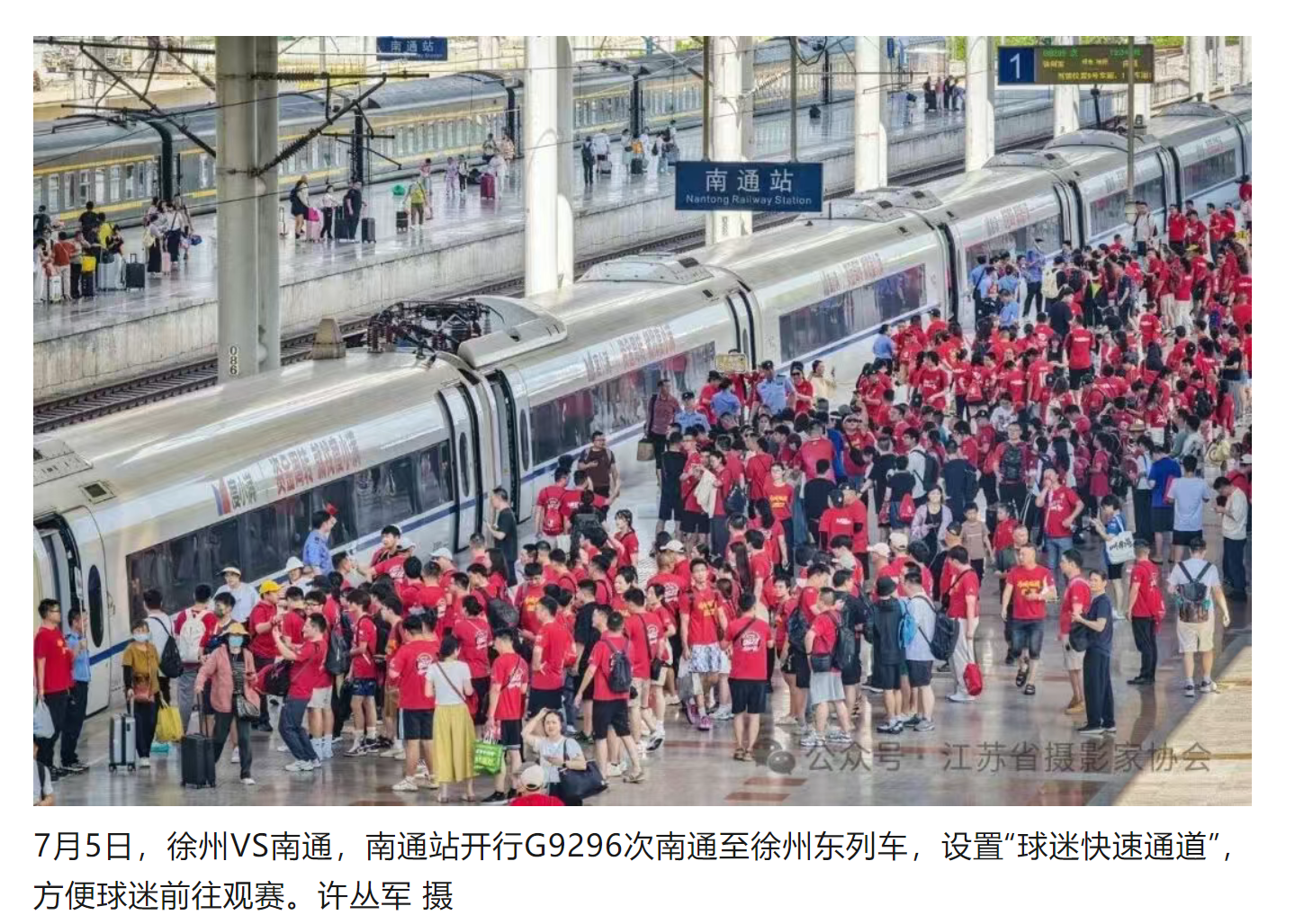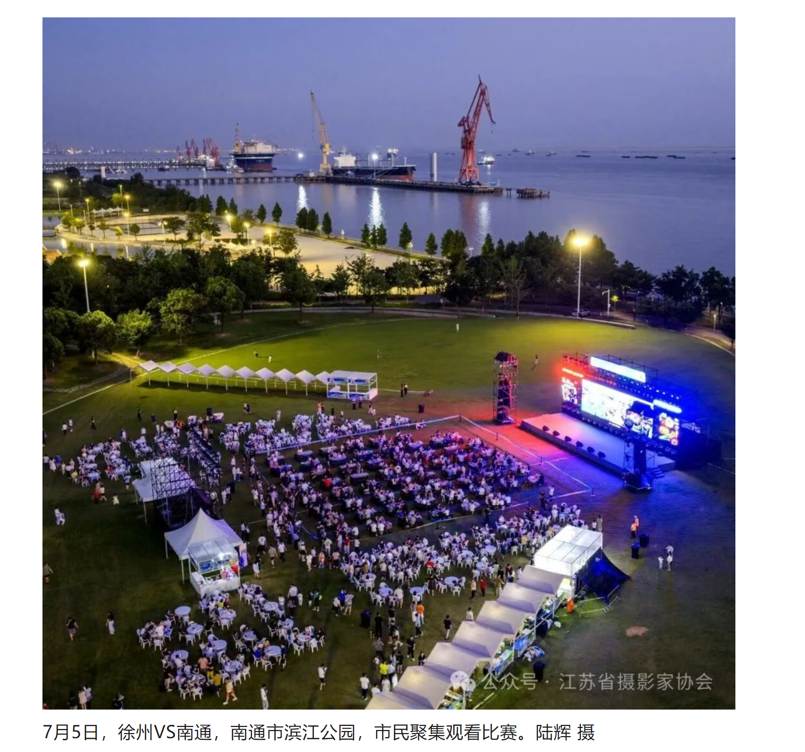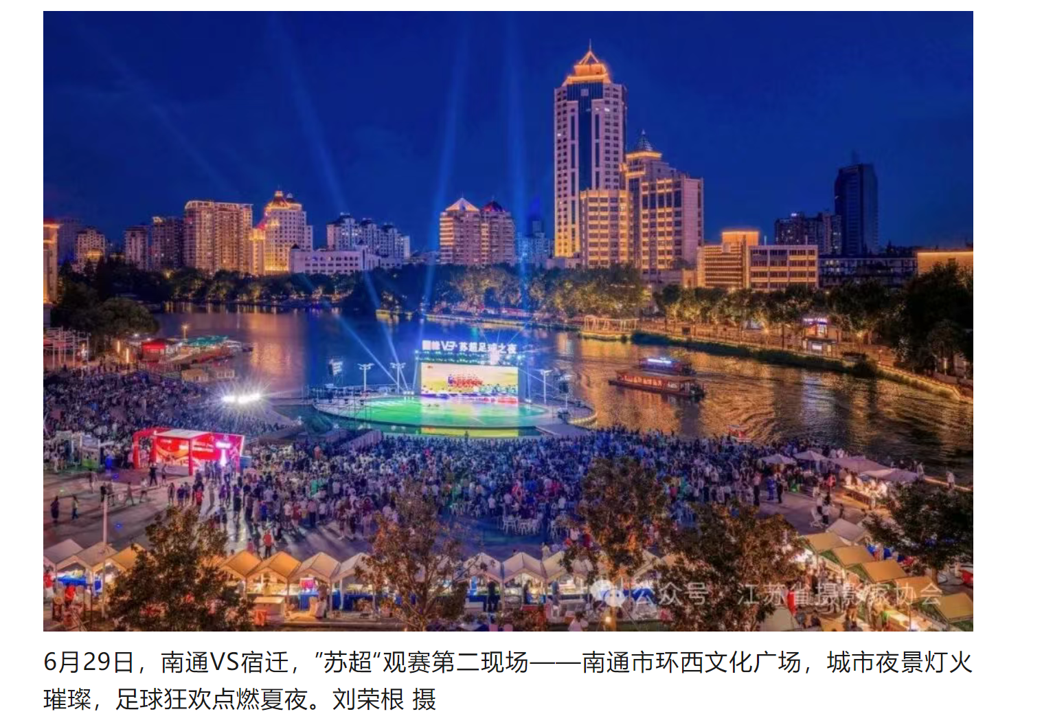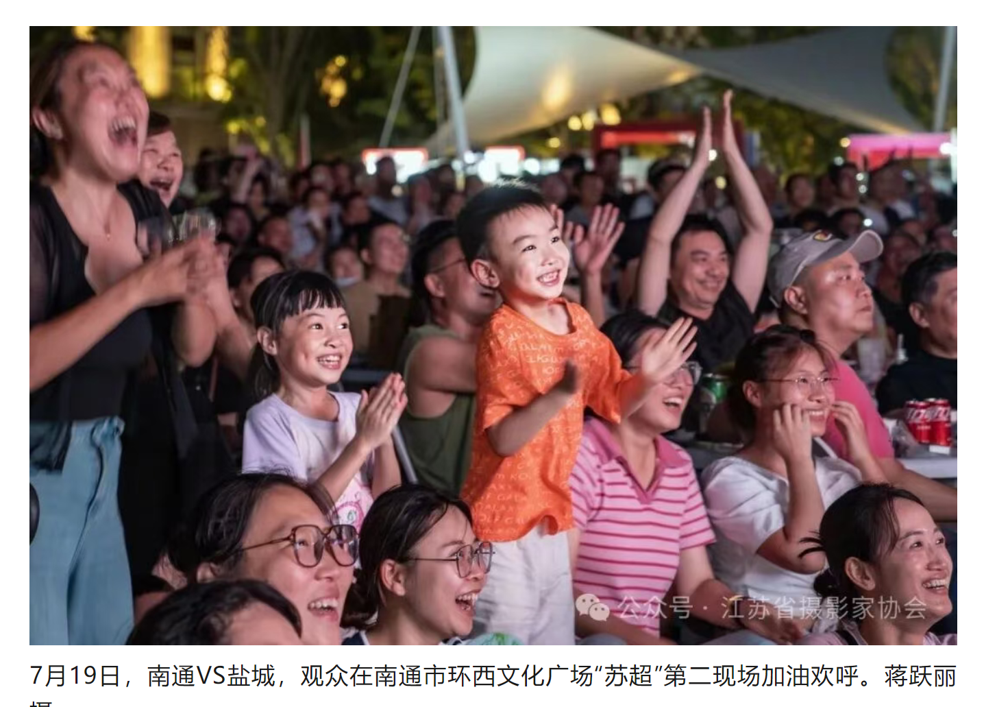 11月7日,江苏省摄影家协会官网公布“苏超”优秀摄影作品展入展名单,南通摄影人和省内摄影人拍摄的南通元素图片占百幅作品四分之一,南通报业传媒集团两位记者拍摄的“南鸟巢”巨幅国旗入场“南通之眼”、球迷专列和南通VS淮安比赛精彩瞬间3幅作品入选。