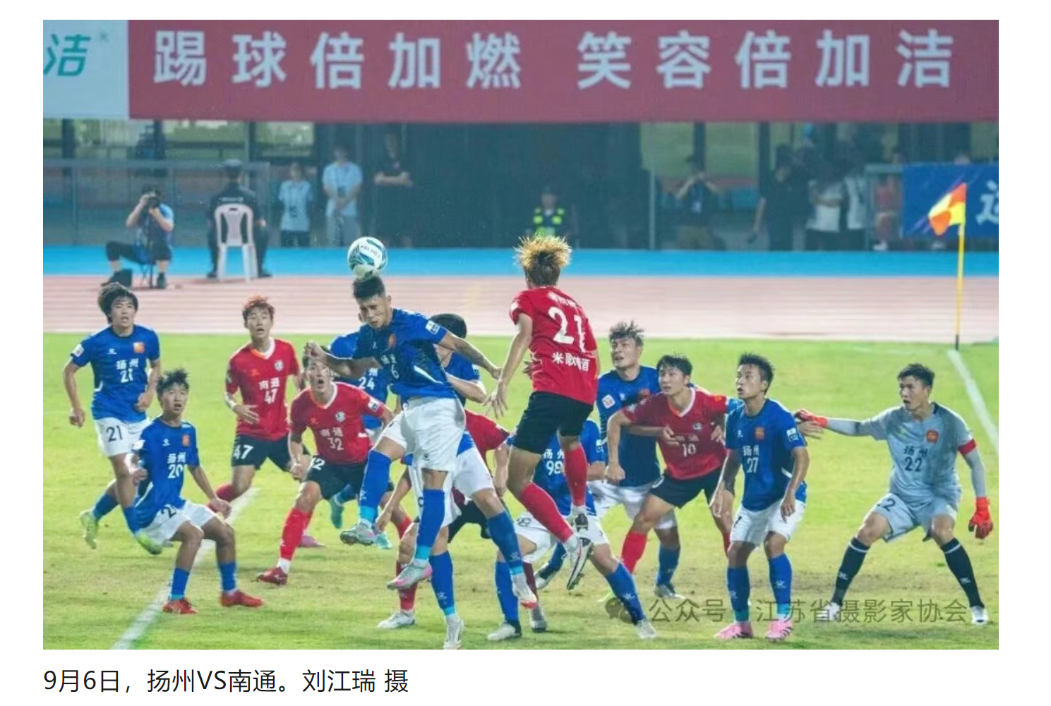入展的摄影作品不仅记录了“苏超”赛场上的跌宕起伏,球员腾空射门的精彩瞬间、观众席上的人浪翻涌,更捕捉了赛场外的动人图景,既能看见足球运动的原始魅力,亦能触摸到城市文化的温度。