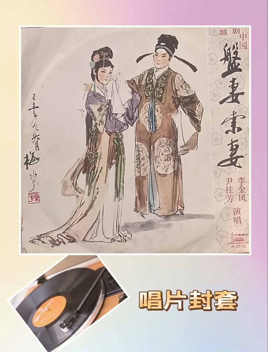 在旧书堆里无意中发现了一个越剧《盘妻索妻》的纸质唱片封套,拂去浮土尘烟,顿觉赏心悦目。