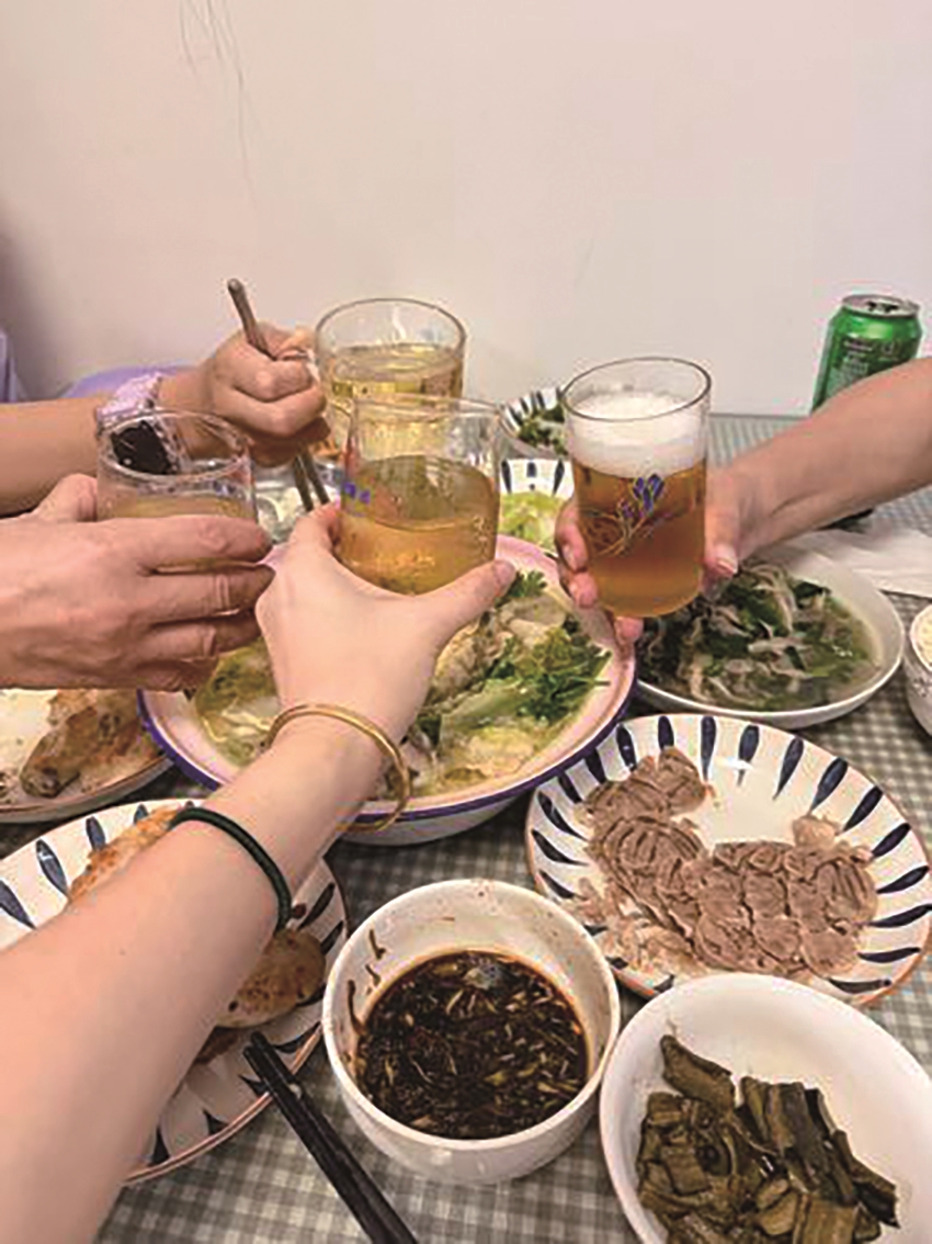 中秋夜,家里摆满了母亲做的拿手菜,满桌的香气弥漫着家的味道。一家人围坐,欢声笑语,其乐融融。这时,我可爱的女儿小圆子突然眨着眼睛说:“外公,用右手和我们碰杯嘛!”父亲微微一顿,笑着说:“那我试试吧!”他缓缓伸出有些颤抖的右手,努力稳稳地举起酒杯。那一刻,我们的心都被触动了,这是父亲中风后第一次主动举杯。