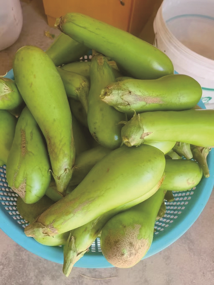 启东的青皮长茄是国家农产品地理标志登记保护品牌。“果皮翠绿色,皮薄,平滑有光泽,果肉浅绿白色,不易褐变,质地细腻柔嫩。纤维少,味甘甜,熟食口感糯性。”