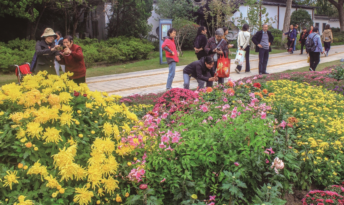 10月31日,市区文峰公园内菊香满径,市民和游客纷纷来此赏菊打卡。 孙镜福