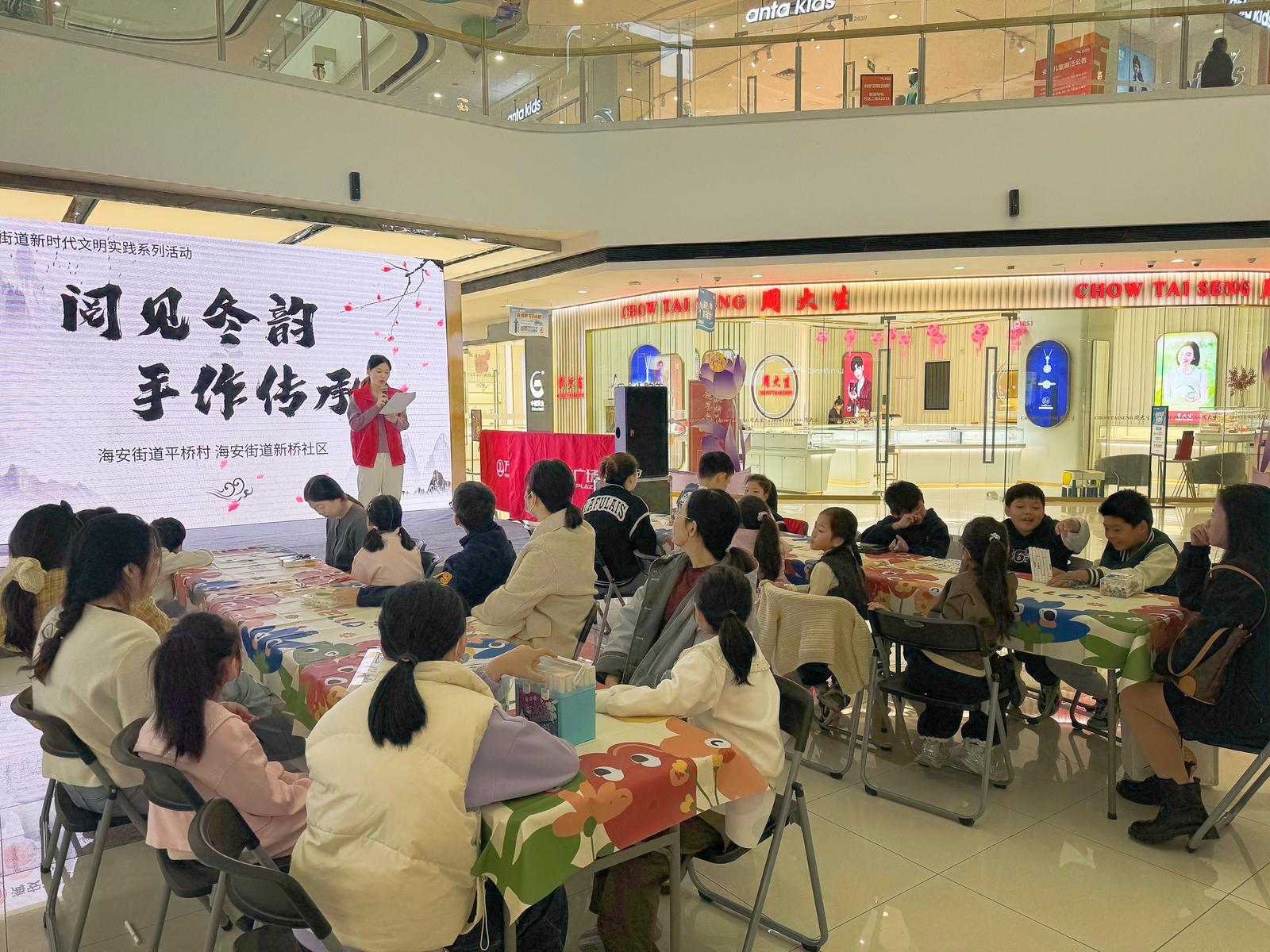 窗外冬意渐浓,窗内暖意涌动。近日,海安街道平桥村、新桥社区组织开展“阅见冬韵 手作传承”文化活动,孩子们在知识与畅想的海洋中徜徉,以阅读感知冬韵,以手作传承文化,开启了一段温暖而充实的冬日旅程。