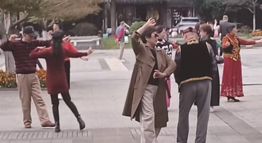 驻足观望良久,我发现这群舞者与众不同,不受制于交谊舞的逆时针前进规则,也不玩广场舞横平竖直的排列模式,而是自由自在,随心所欲地放飞自我。