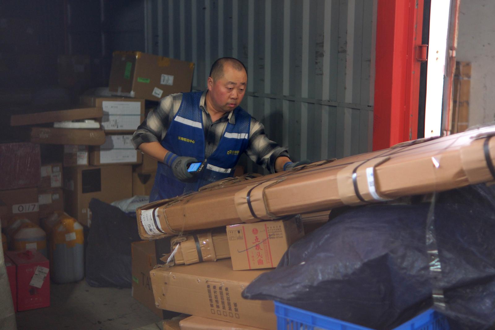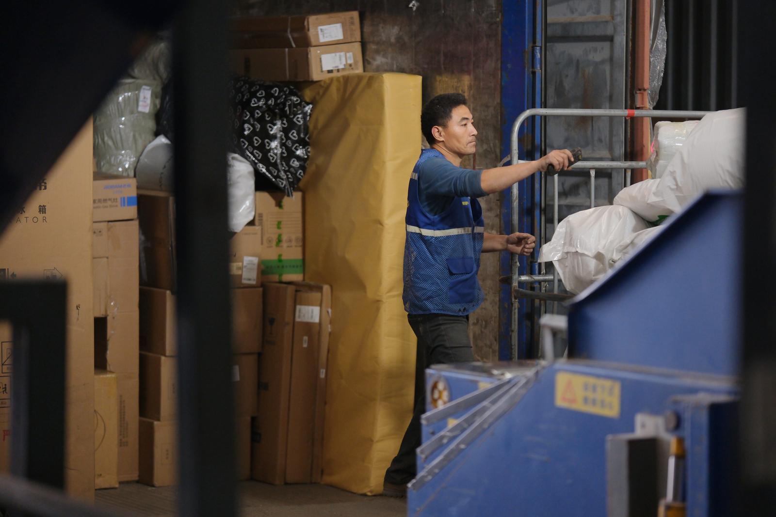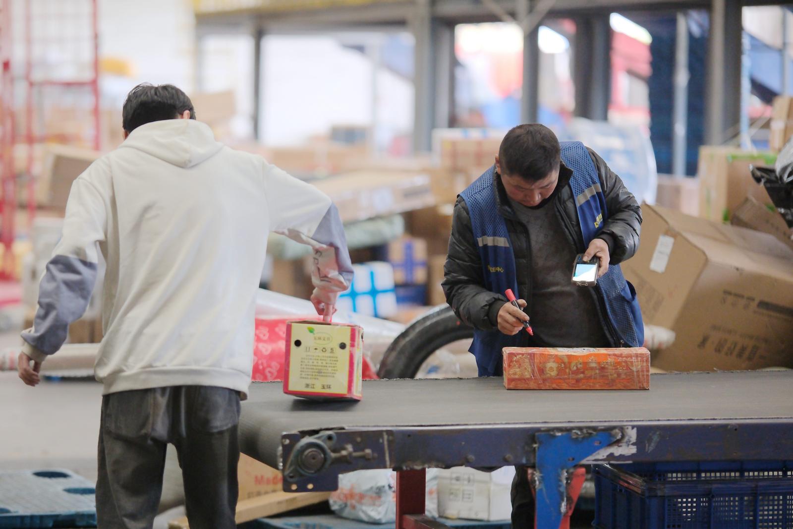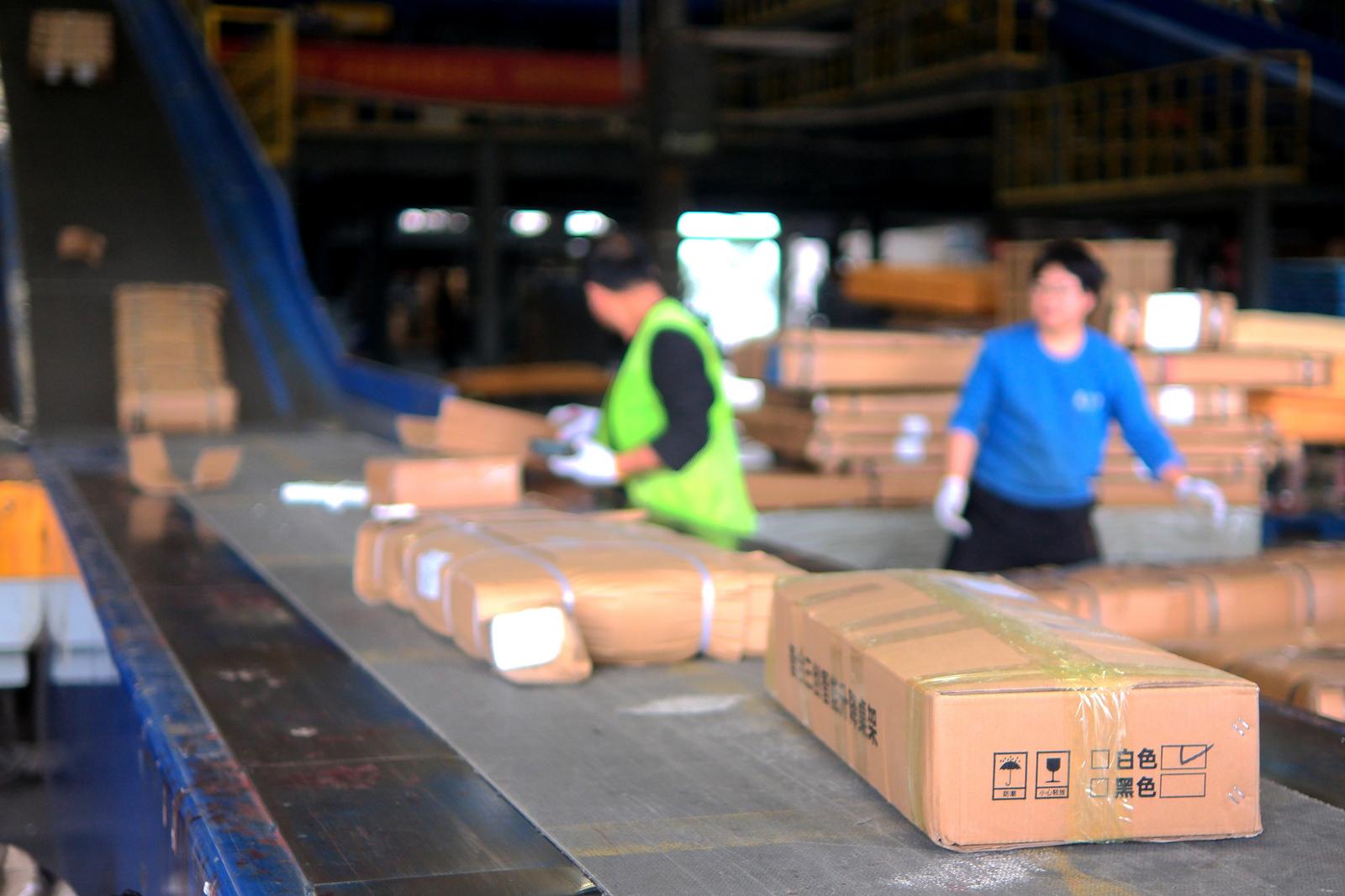 以上图片为11月12日,南通宝湾国际物流园内的一家快递企业员工正在分拣快件。