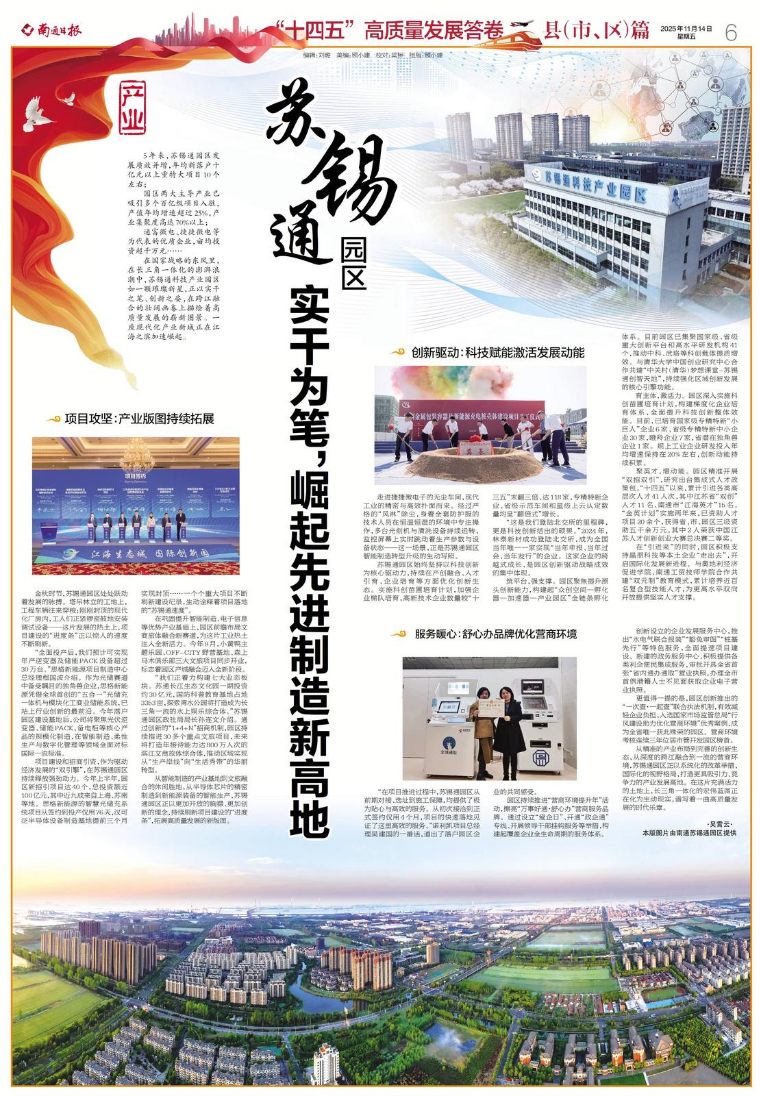 从智能制造的产业基地到文旅融合的休闲胜地,从半导体芯片的精密制造到新能源装备的智能生产,苏锡通园区正以更加开放的胸襟、更加创新的理念,持续刷新项目建设的“进度条”,拓展高质量发展的新版图。