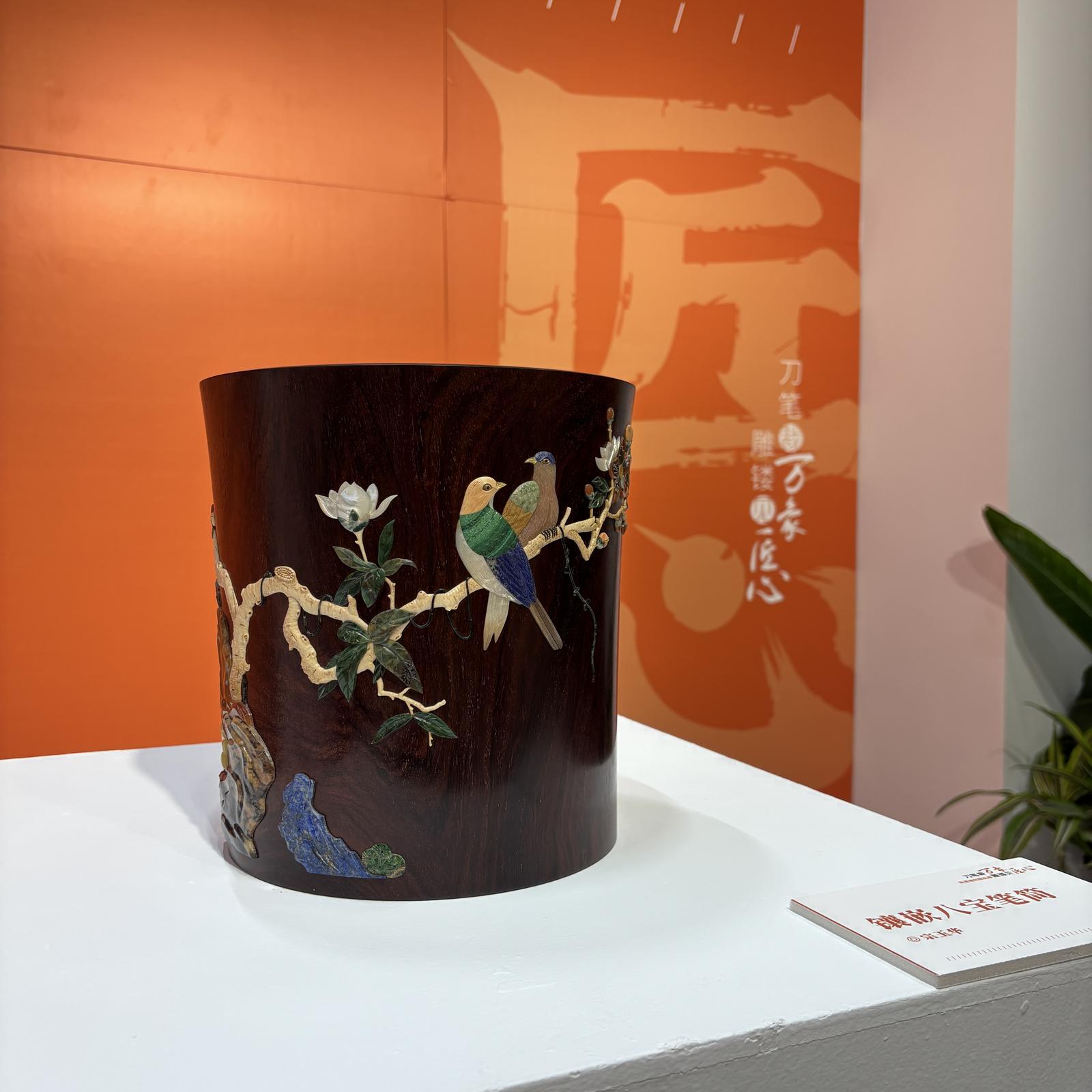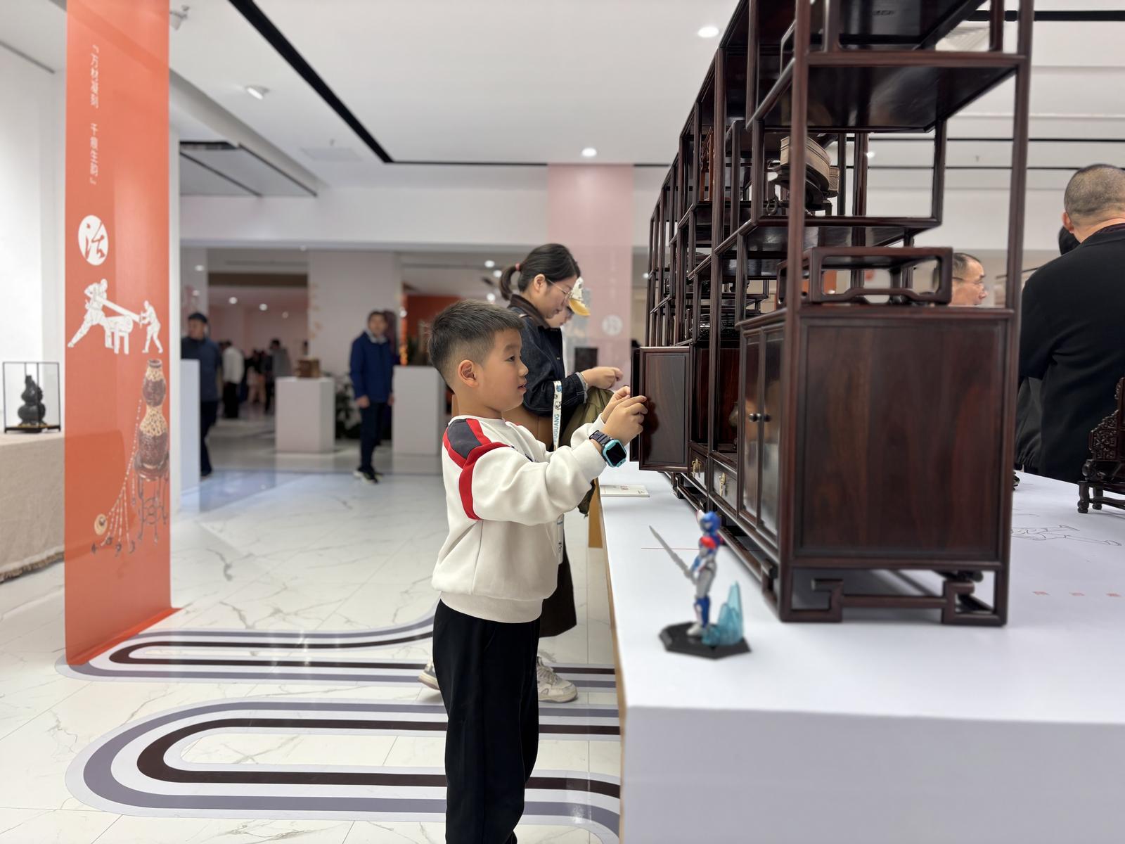 恰逢周末,不少市民走进商圈,在休闲购物之余,也享受了一场高品质的文化体验。从启东专程前来观展的江女士表示:“我很喜欢木艺,自己也尝试制作过木制发簪,这个过程非常解压。今天带孩子来,看到许多融合现代审美的工艺品,他很感兴趣,也希望借此机会能让他多接受传统文化的熏陶。”