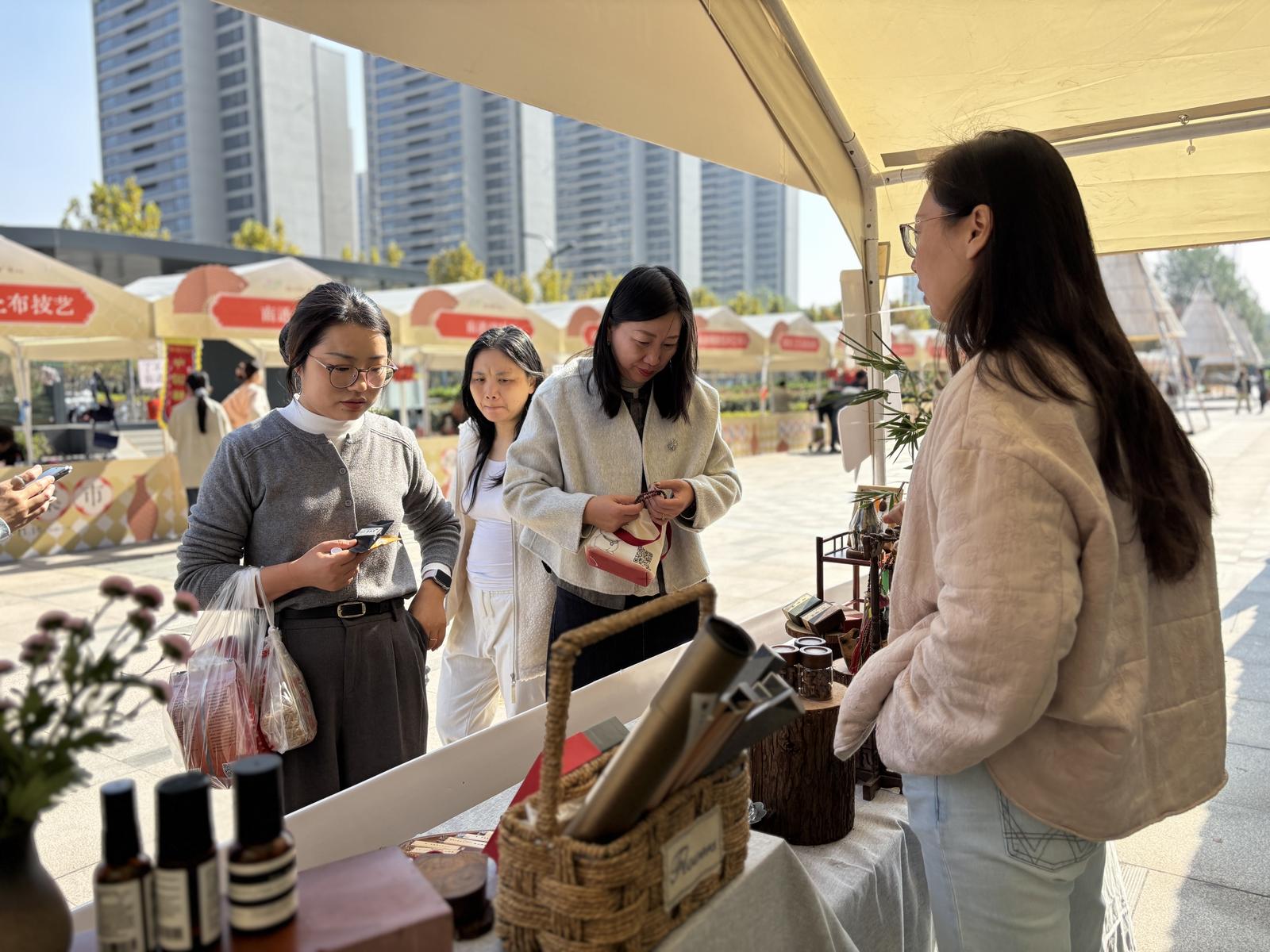 与此同时,为期两天的非遗集市在文峰广场户外区域热闹开市。50个展位集中展示了南通本地50项具有代表性的非遗项目及人气文创产品。市民穿梭其间,既可近距离领略蓝印花布印染、南通扎染、如皋盆景制作等精湛手工艺,亦可品尝四宜糕点、石港窨糕等地方特色美食,沉浸式感受非遗融入日常生活的烟火气息。