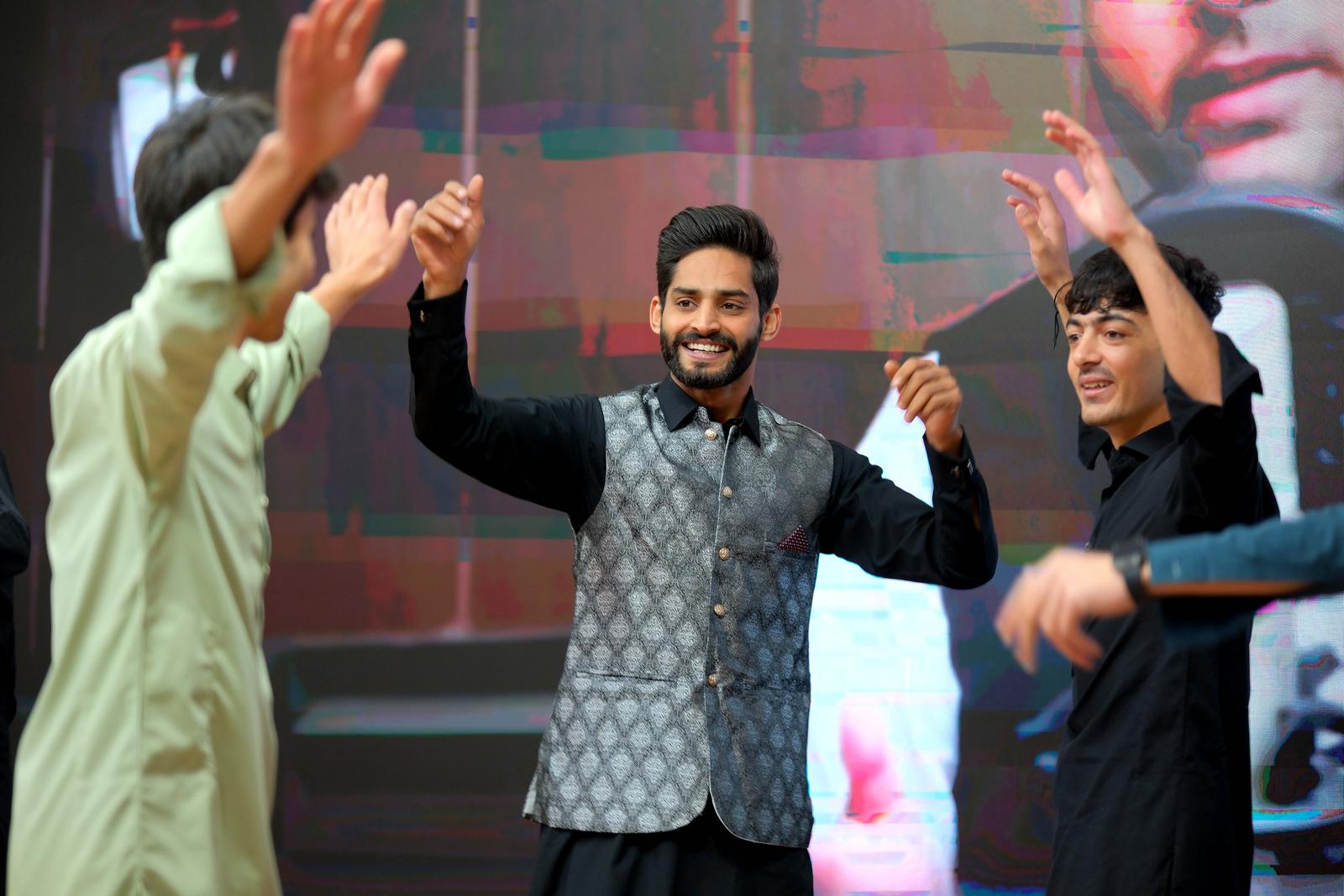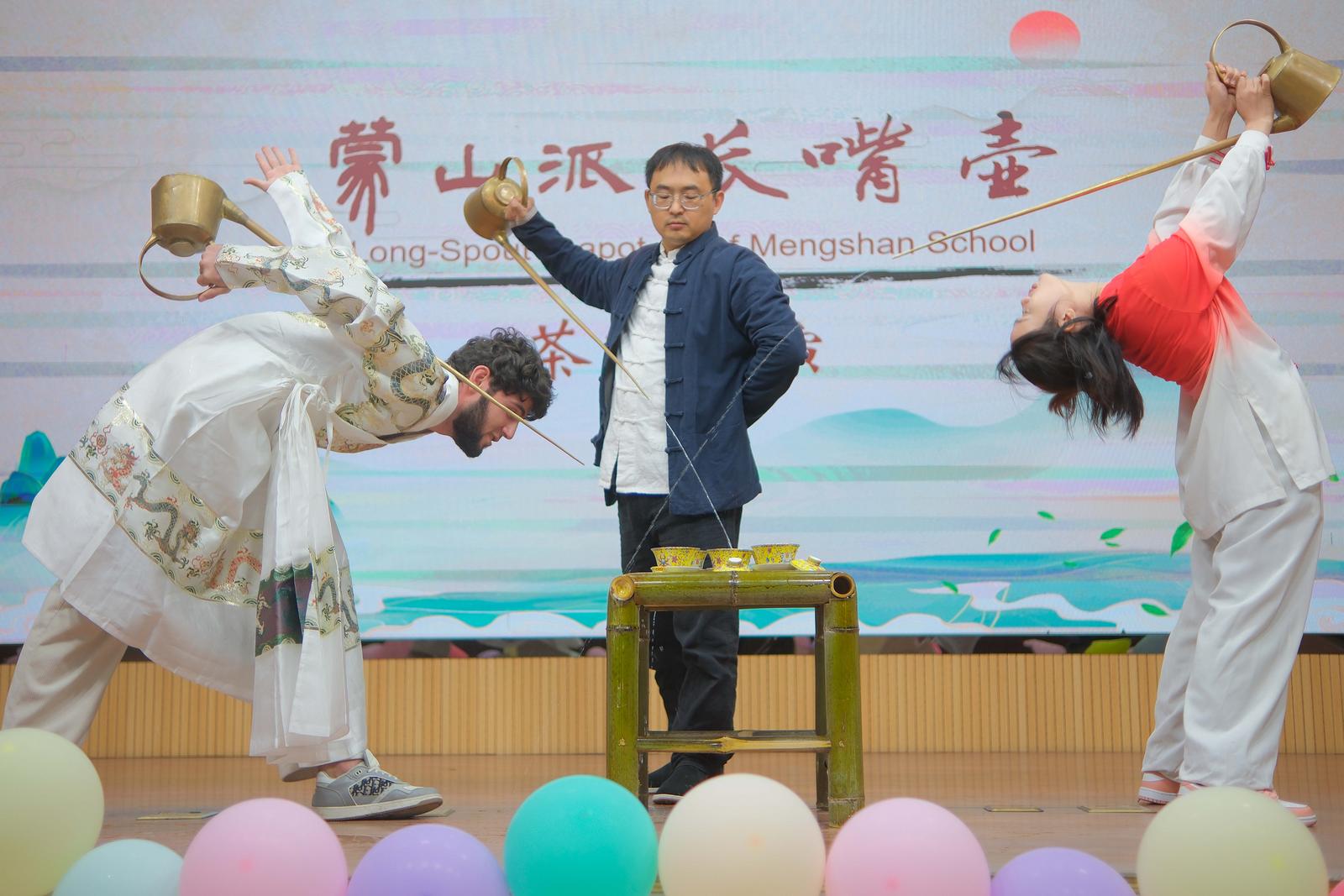 活动现场,印尼学生李笑、妃李亚以双人舞蹈《Tabola Bale Dance》率先点燃气氛,灵动舞姿展现印尼传统舞蹈的独特韵律。学校教师许金波与柬埔寨、塔吉克斯坦学生合作的长嘴壶非遗茶艺表演,将中国茶文化与跨国协作巧妙融合,赢得阵阵喝彩。十余名柬埔寨学生共舞《温柔的爱》,以柔美动作传递民族情感;中国学生史可欣的伦巴《Attention》则以热情舞步彰显青春活力。巴基斯坦学生阿赞、夏河、阿里带来的舞蹈《Secret of heart》,通过充满张力的表演展现异域风情。最后,全体留学生身着本国特色服饰进行展示,色彩斑斓的民族服饰与各国文化符号交织,形成一道流动的文化风景线。