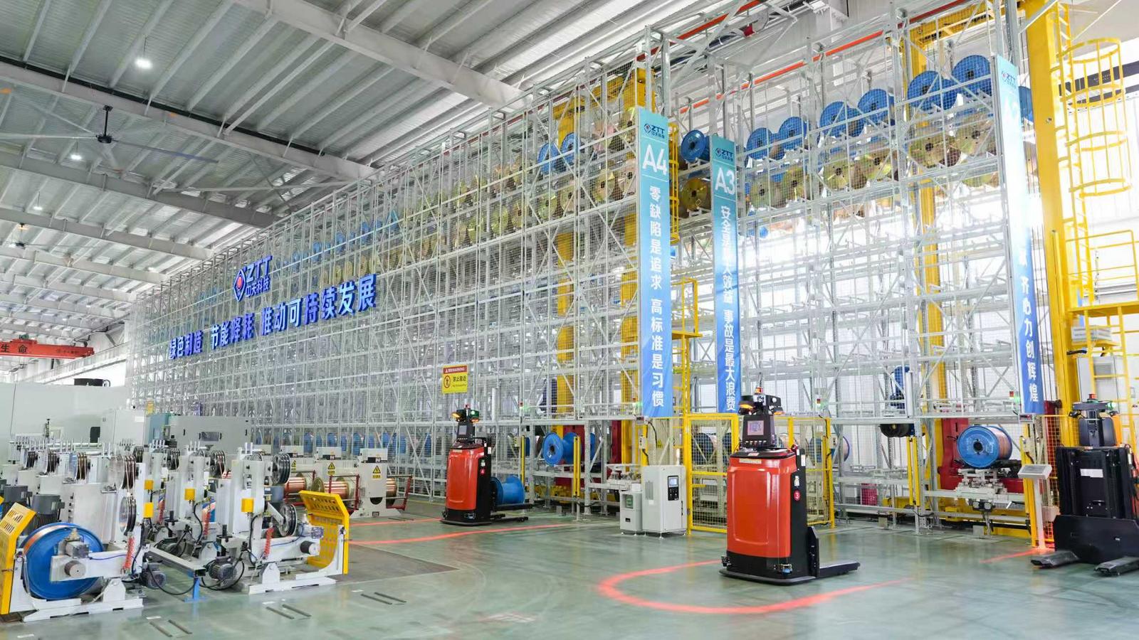 机器臂精准控制、AGV小车自动穿梭、数据大屏实时更新……走进占地3.2万平方米的中天耐丝有限公司生产车间,科技感扑面而来,巨型屏幕构成的“数字大脑”,让每台设备的运转、每道工序的流转都清晰可见。