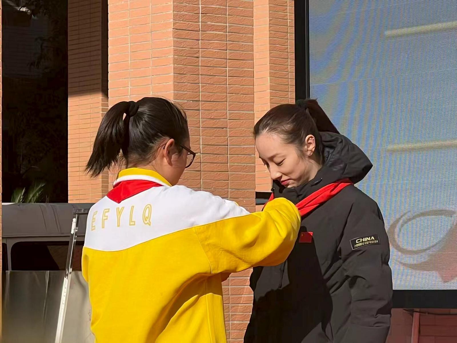 在孩子们崇敬的目光中,学生代表为邱铮献上鲜艳的红领巾。身前红领巾飘扬,邱铮接过话筒深情发言:“当年在跃小读书时,老师们关爱有加,今天回到母校格外激动。”