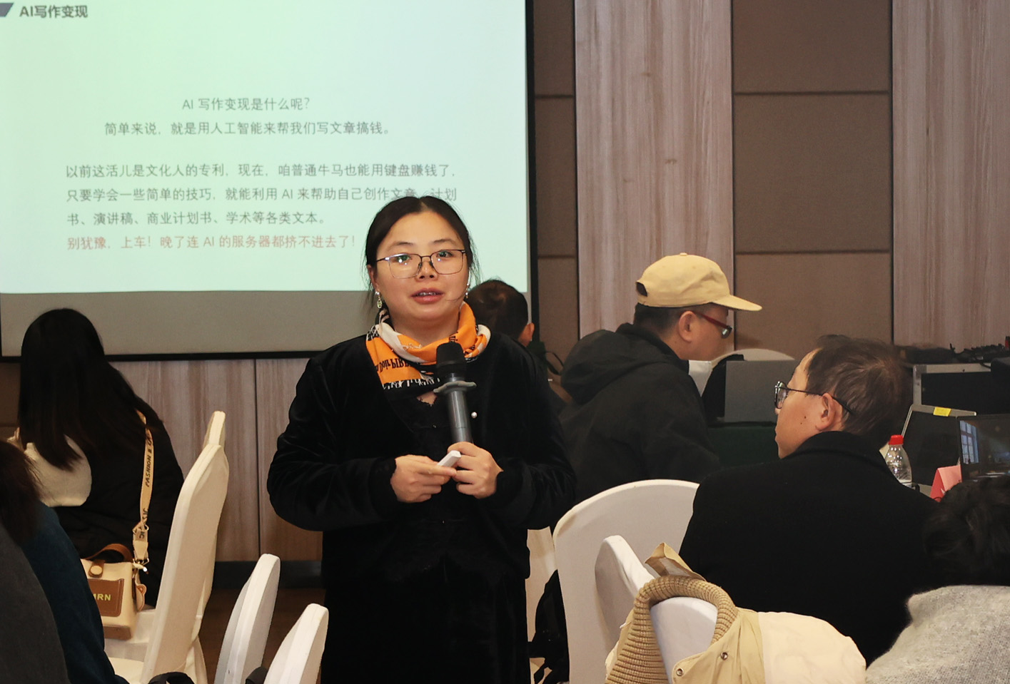 授课老师袁春雪为华东师范大学现代教育技术专业硕士毕业生,具有丰富的从业经历。本次培训课程立足实战应用,系统讲授各类AI软件与PPT制作、商业海报制作、多媒体应用、短视频制作编辑等相关软件工具的融合技巧,主要解决学员们的三大痛点:不知道AI能做什么;知道工具却不会用;会用工具但不会变现,让学员们从“会用AI”到“用AI赚钱”。