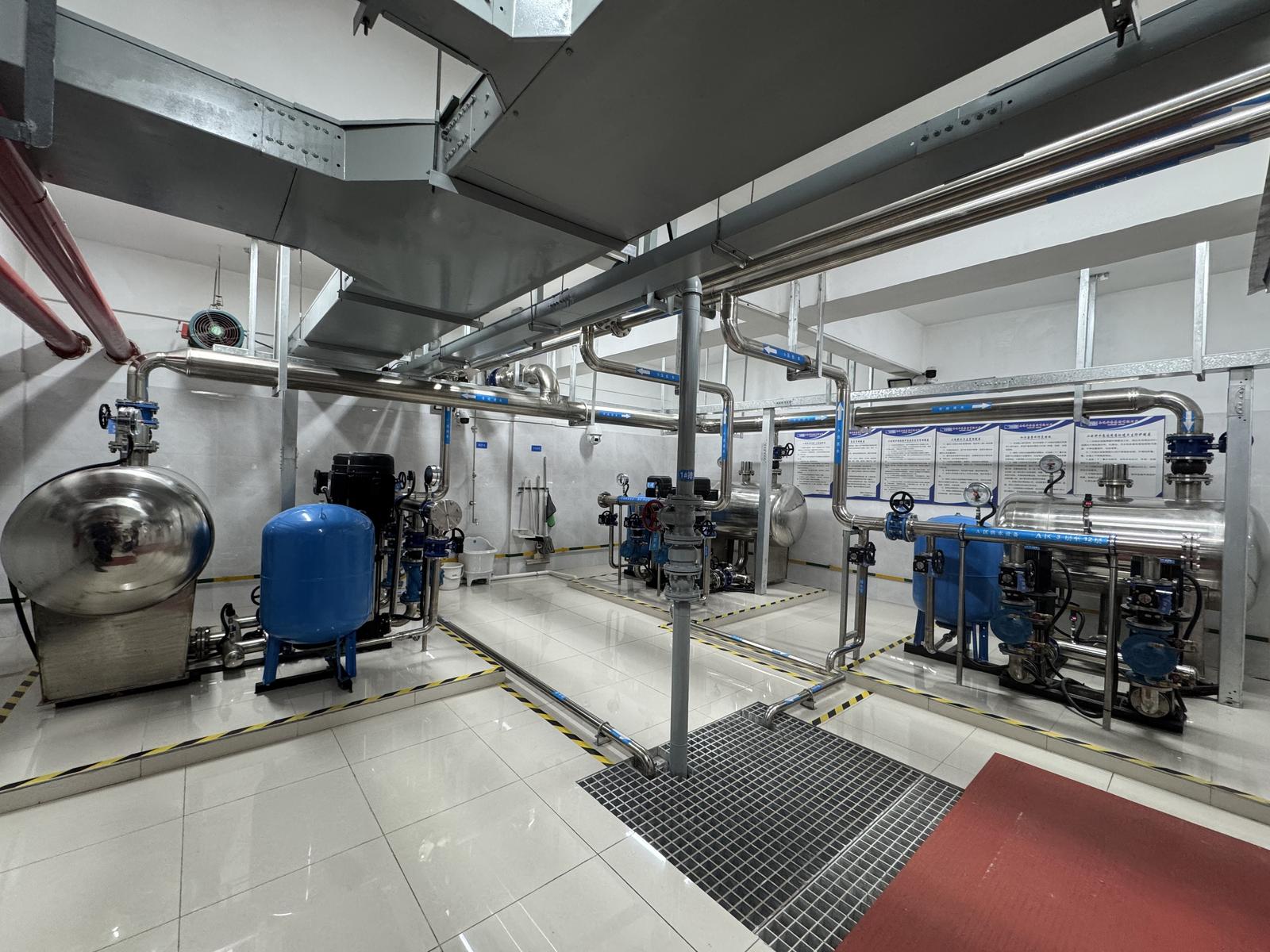 硬件升级是本次改造的重头戏。以往使用的沟槽管被全面更换为食品级304无缝不锈钢管,不仅使用寿命更长、安全卫生,内壁光滑的设计也有效降低了水流能耗。与此同时,老旧的PLC控制系统也全面升级,人机交互界面从单调的文本模式转变为直观的图形化显示,运维人员通过触摸屏就能实时掌握设备运行状态。