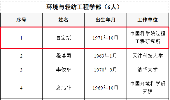 1 | 曹宏斌 | 1971年10月 | 中国科学院过程工程研究所 |