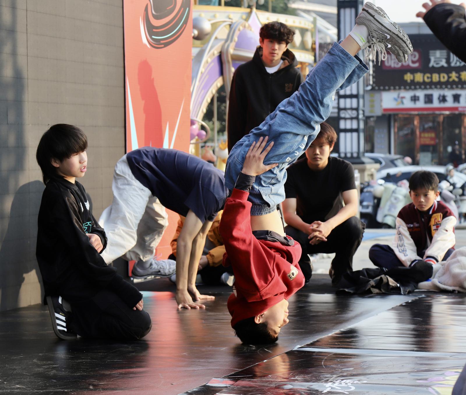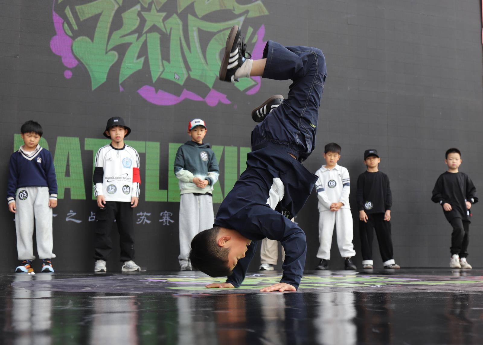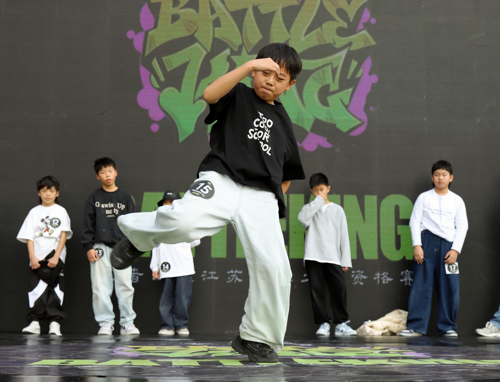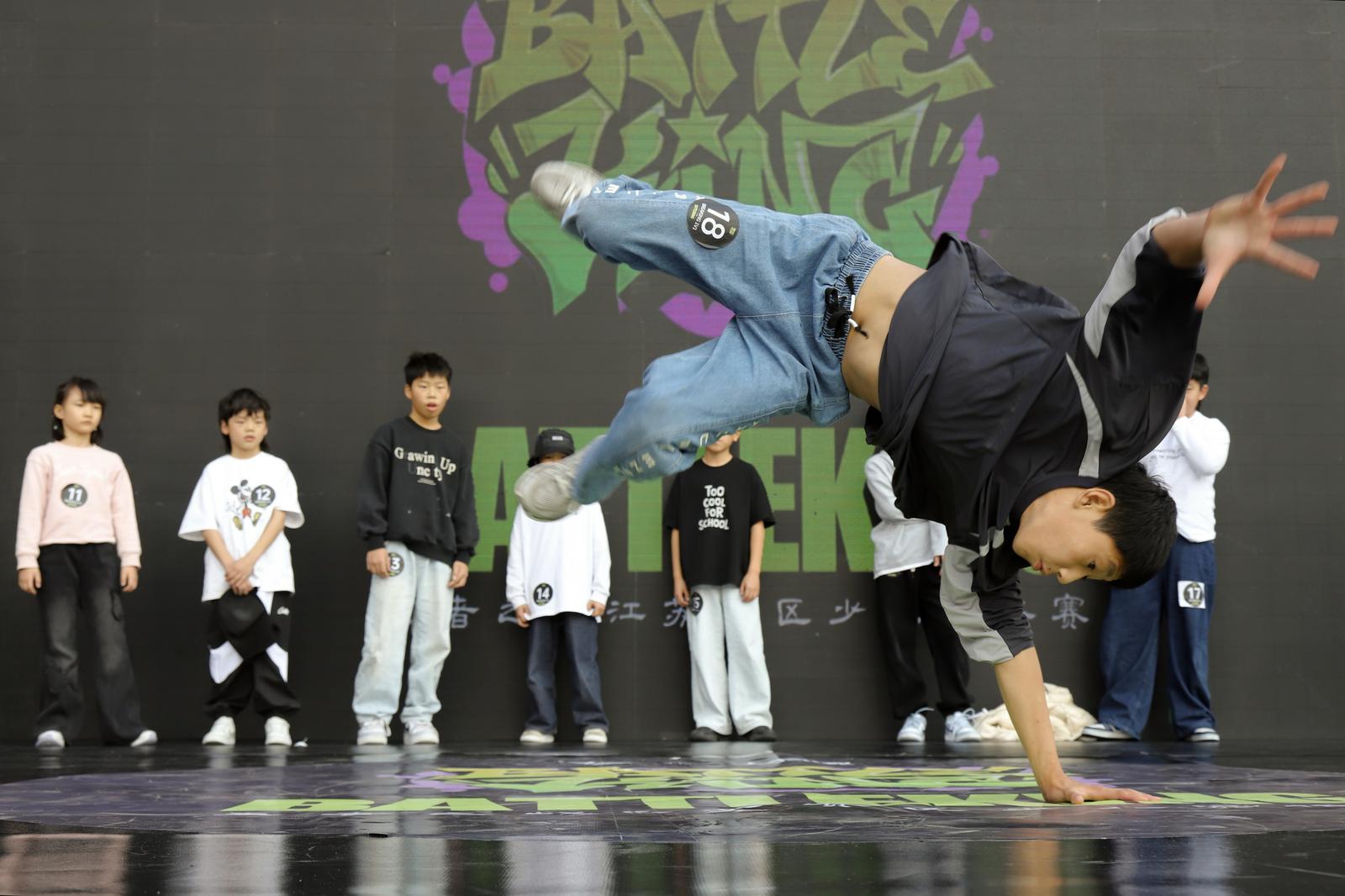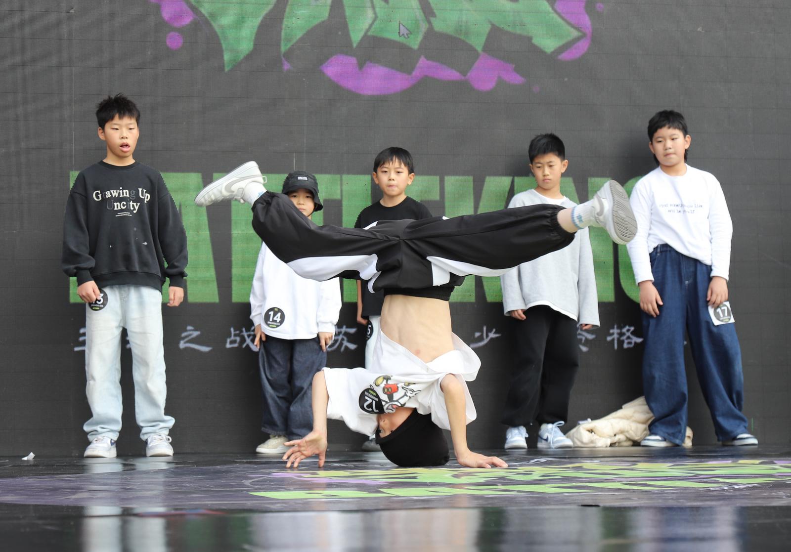 比赛中,参赛少年各显身手,快速脚步移动、各种倒立定格动作,以及在地板上或者空中的高难度旋转等技巧动作,将街舞的魅力表现得淋漓尽致。