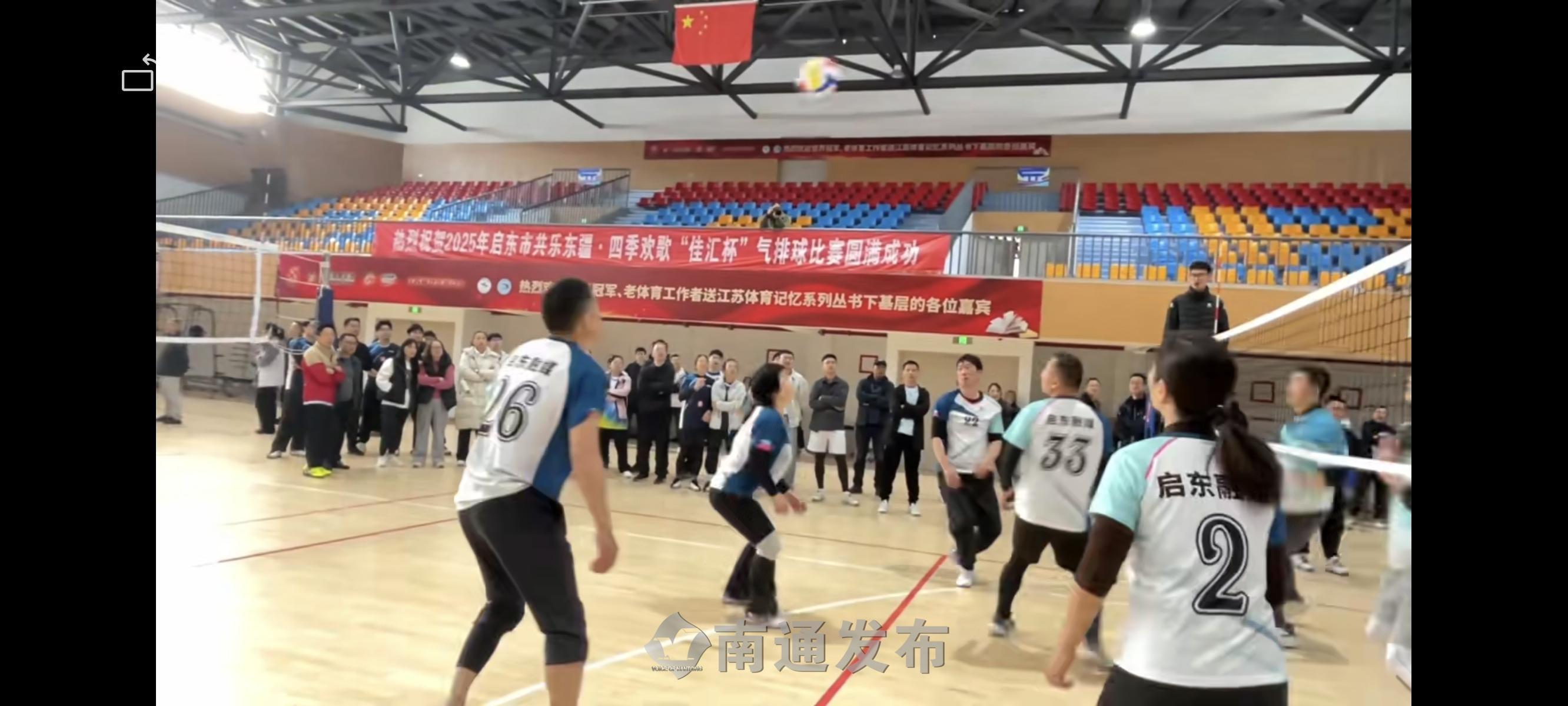 1月22日,2025年启东市共乐东疆•四季欢歌“佳汇杯”气排球比赛在蝶湖中学体育馆开赛,来自乡镇、园区、街道、市直机关组和社会精英组共26支队伍、300余名气排球运动爱好者参加比赛。