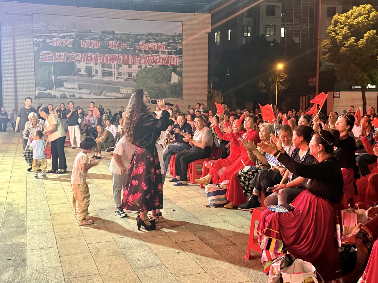 每到演出时间,谭港村大舞台灯火璀璨、人头攒动,演出吸引的不仅有本村居民,还常有外村居民慕名而来。