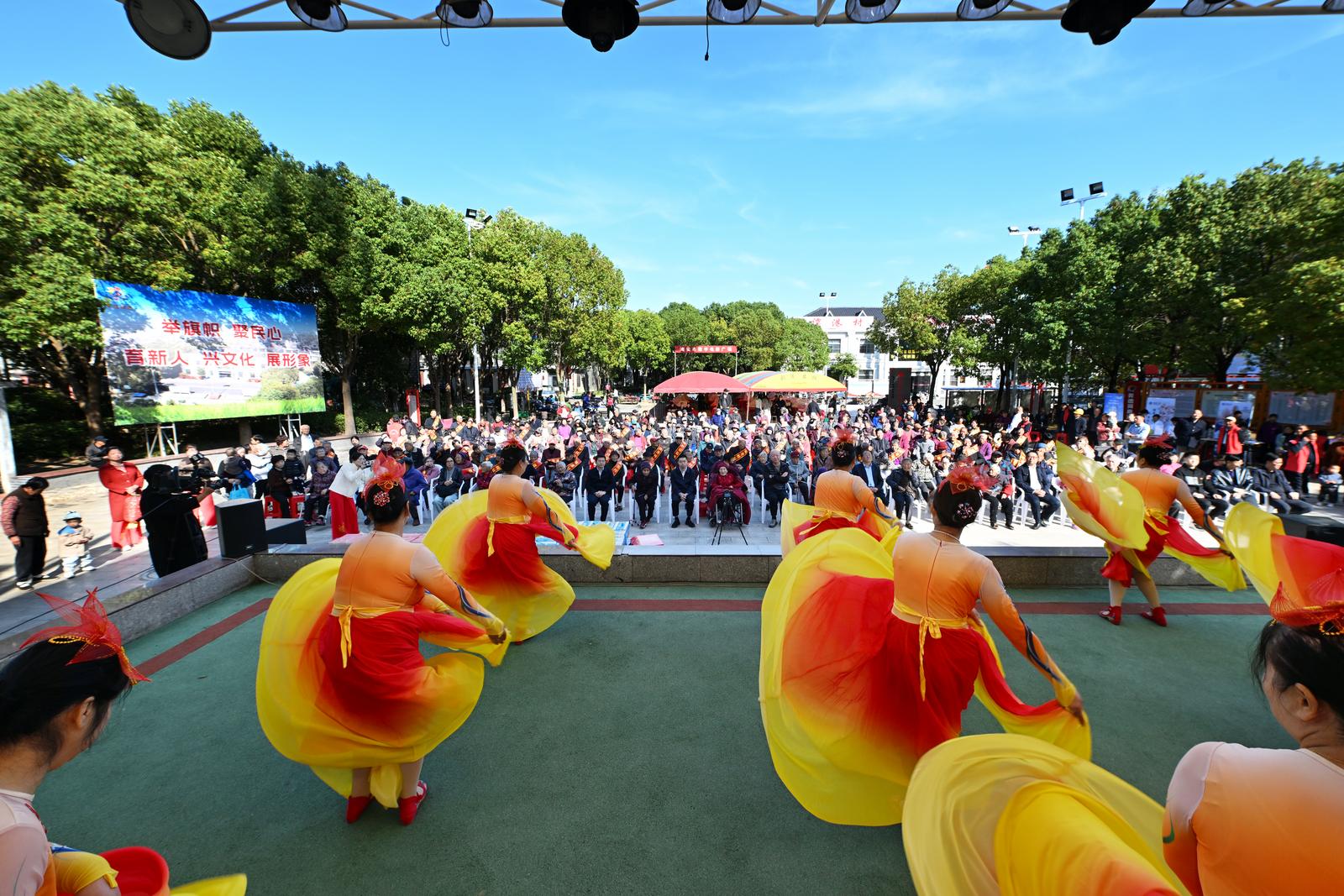 从“围观”到“主演”的身份转变,让村民真正成为文化的主角。在“村舞”展演现场,谭港村舞蹈队演绎的《稻花飘香》惊艳全场:队员们以轻盈的舞步再现播种、灌溉、丰收的场景,裙摆翻动间仿佛金色稻浪起伏。“我们最早只有二三十人,现在有将近百人。”群乐文艺队的编导陈时林自豪地说。这支成立于2013年的队伍,如今已发展成为拥有“群乐”“富雅”两支主力文艺队、十余支细分队伍的文艺团体。“逢节必庆,有演出必上,咱们自己编、自己演,看得更带劲。”