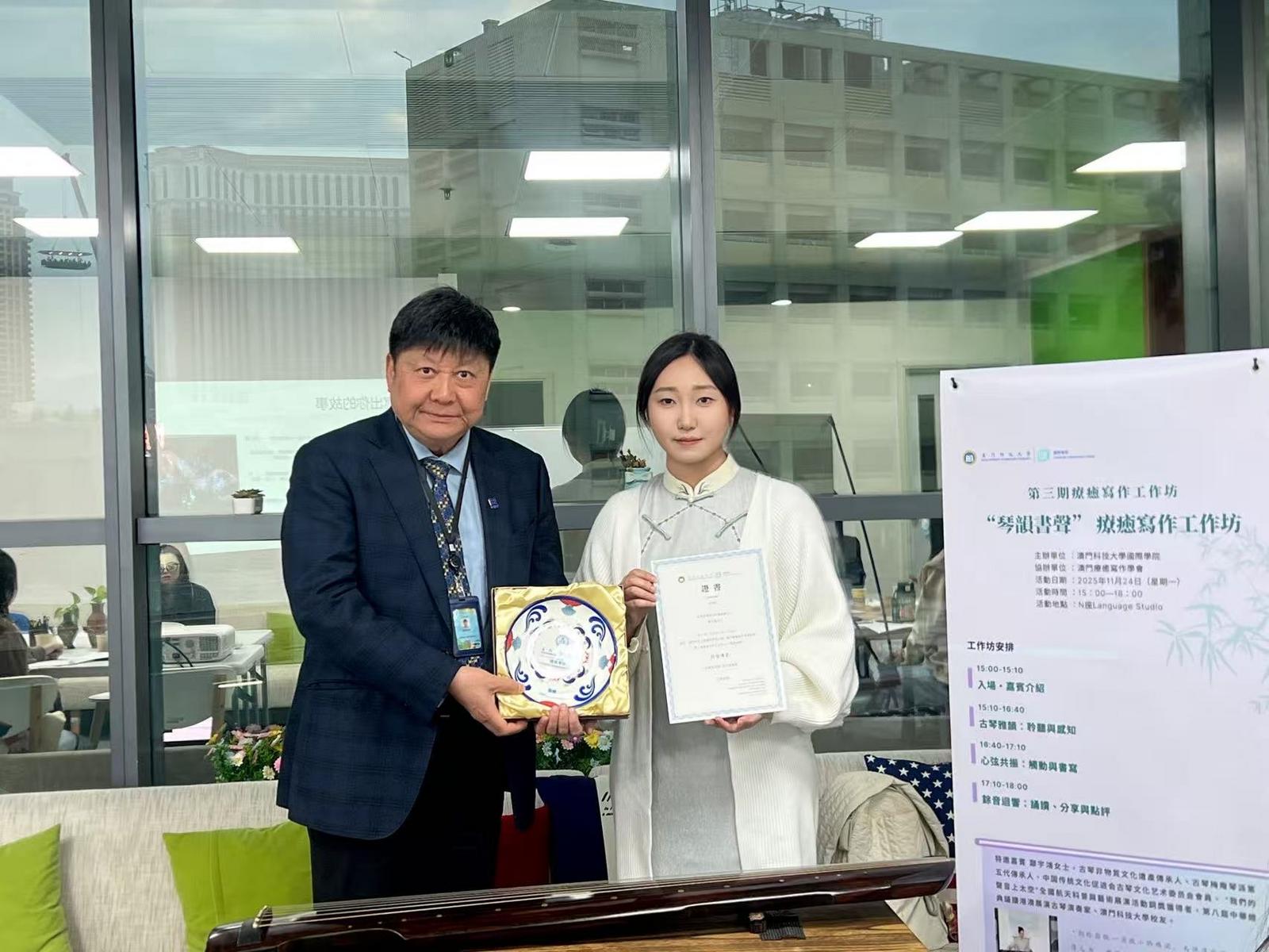 11月24日,梅庵琴派第五代传承人、启东科信技工学校(南通校区)教师郑宇鸿受邀重返澳门,在澳门科技大学国际学院与澳门疗愈写作协会联合主办的“琴韵书声”活动中,以一场集演奏与讲解于一体的非遗古琴艺术讲座,让濠江两岸的文化共鸣持续升温。