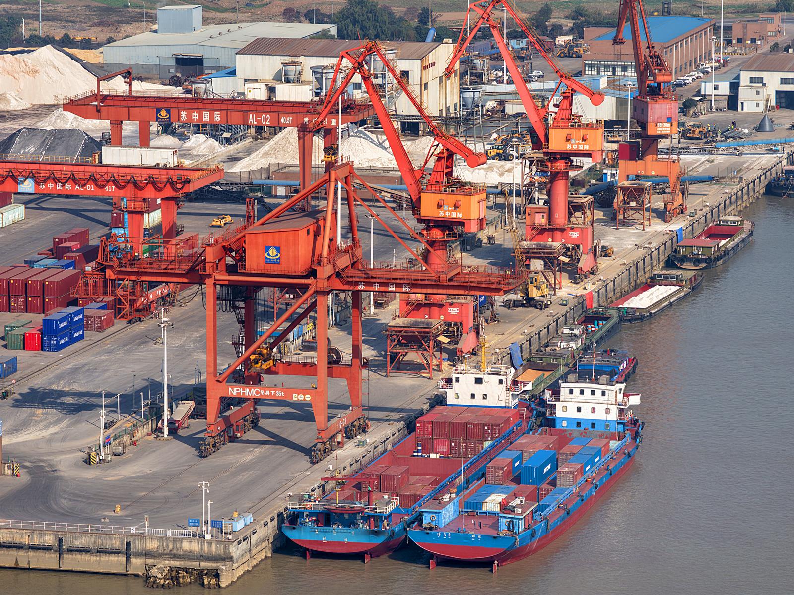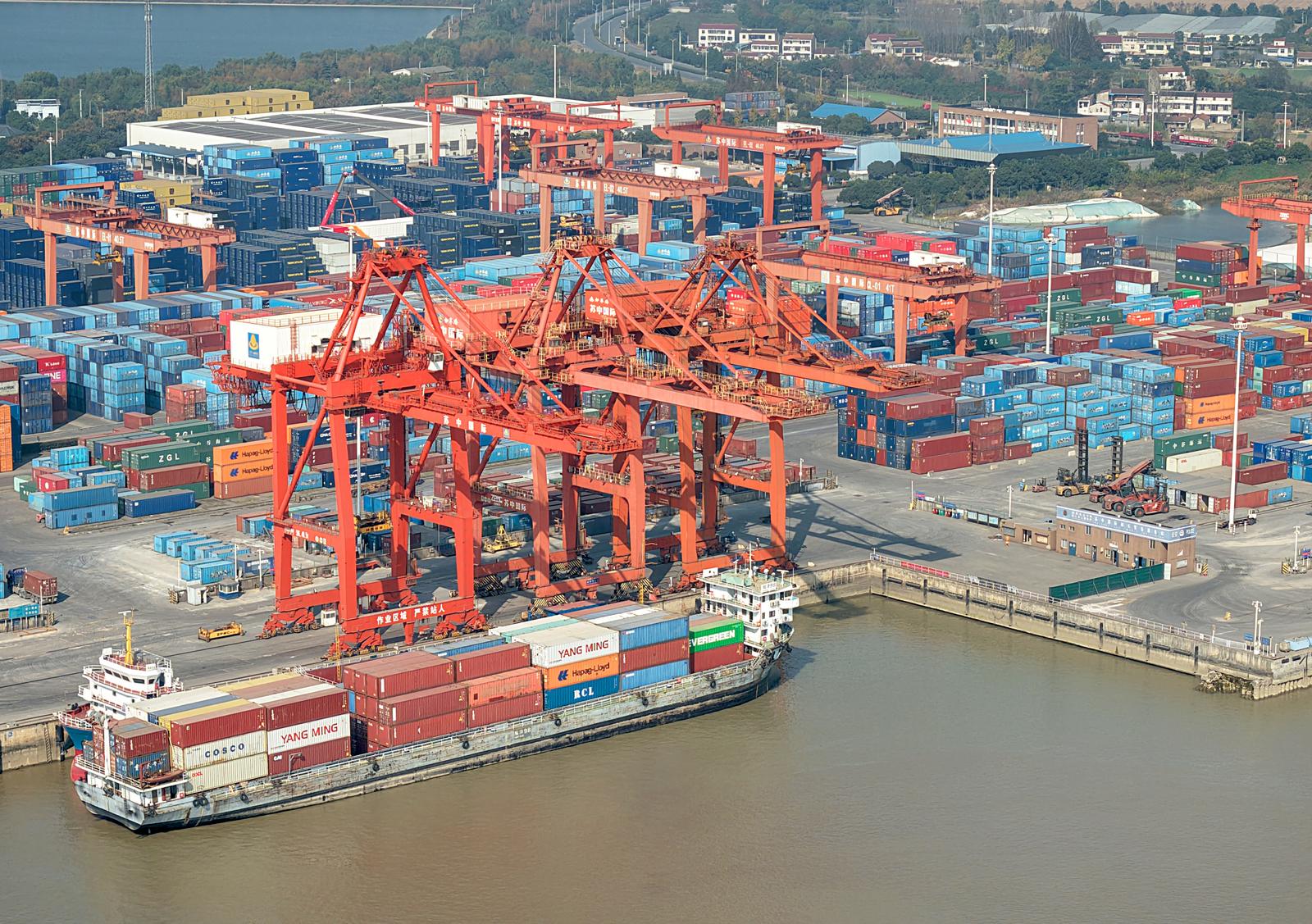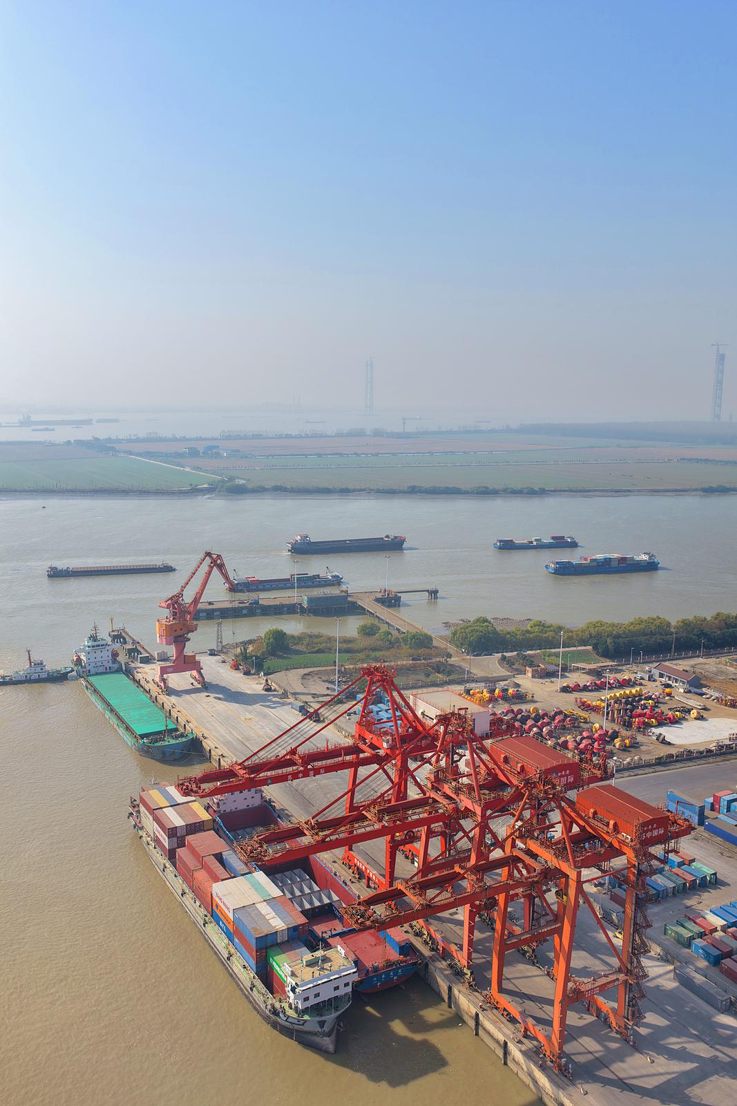 2025年11月24日在如皋市长江镇拍摄的忙碌的如皋港苏中国际集装箱码头和堆场。今年前10月,如皋港货物吞吐量实现6414.99万吨,集装箱吞吐量达53.76万标箱。据悉,随着上月“如皋—美国新奥尔良”直航新航线正式开通,如皋港累计开辟中外航线43条,“码头+保税+仓储+贸易+物流+供应链”的完整港口生态链初步成型。