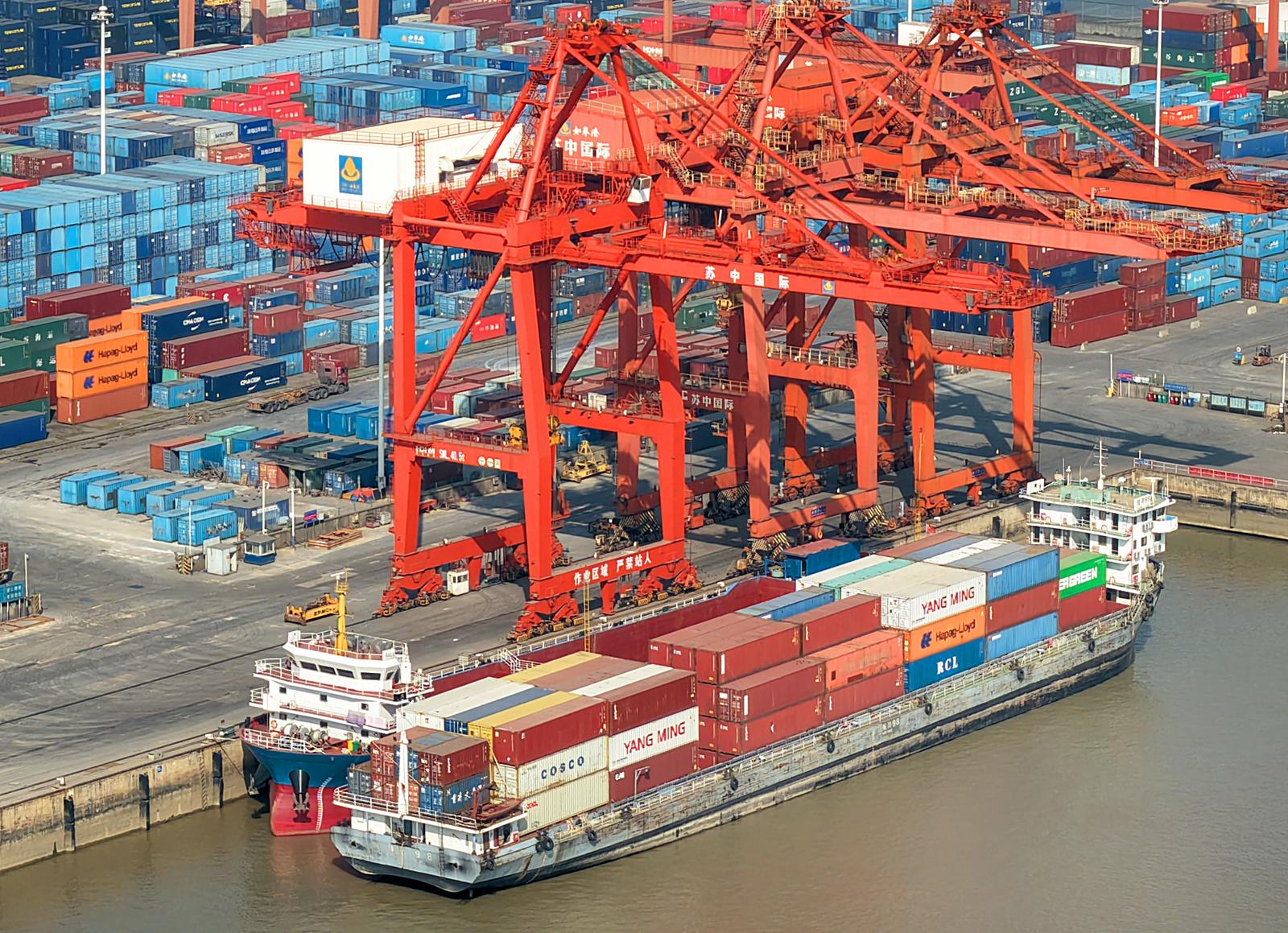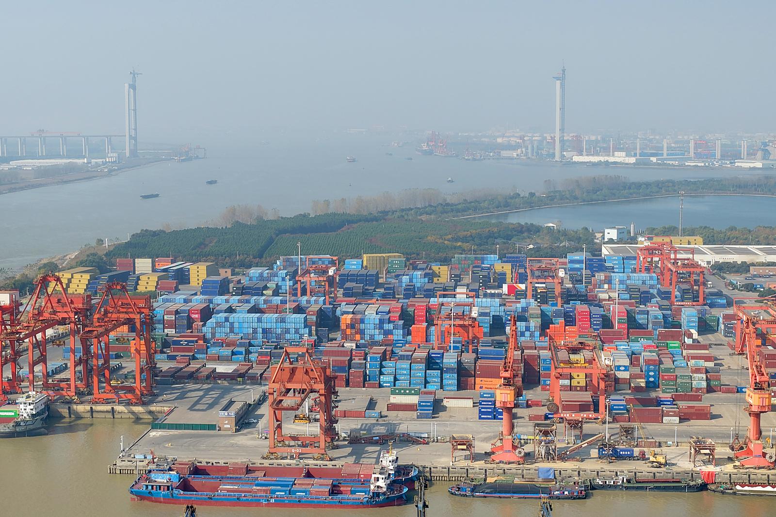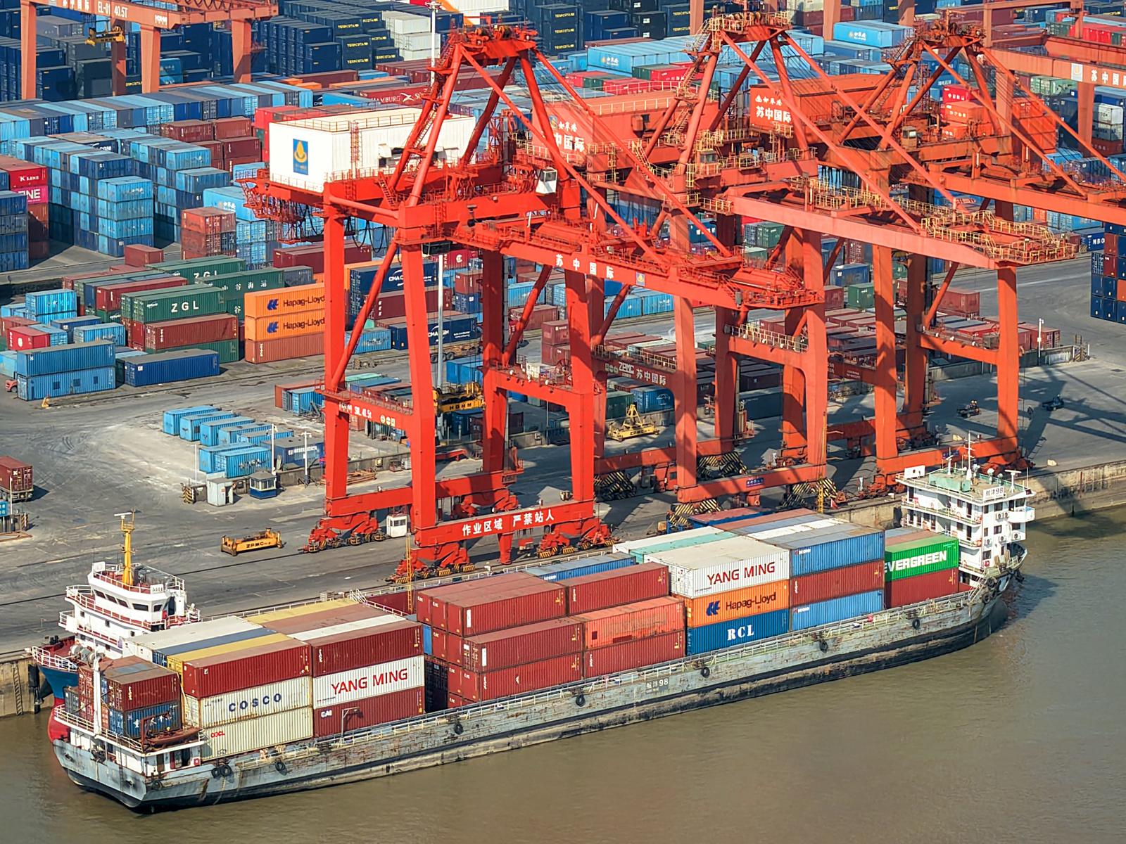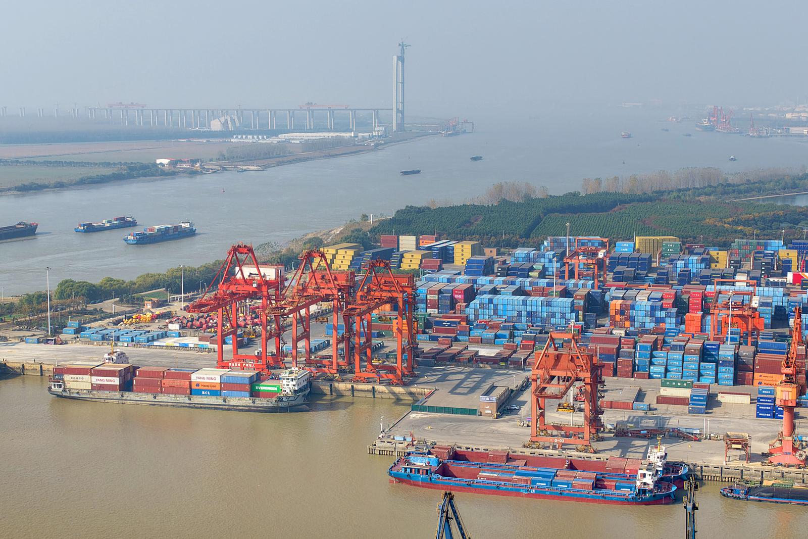 2025年11月24日在如皋市长江镇拍摄的忙碌的如皋港苏中国际集装箱码头和堆场。今年前10月,如皋港货物吞吐量实现6414.99万吨,集装箱吞吐量达53.76万标箱。据悉,随着上月“如皋—美国新奥尔良”直航新航线正式开通,如皋港累计开辟中外航线43条,“码头+保税+仓储+贸易+物流+供应链”的完整港口生态链初步成型。
