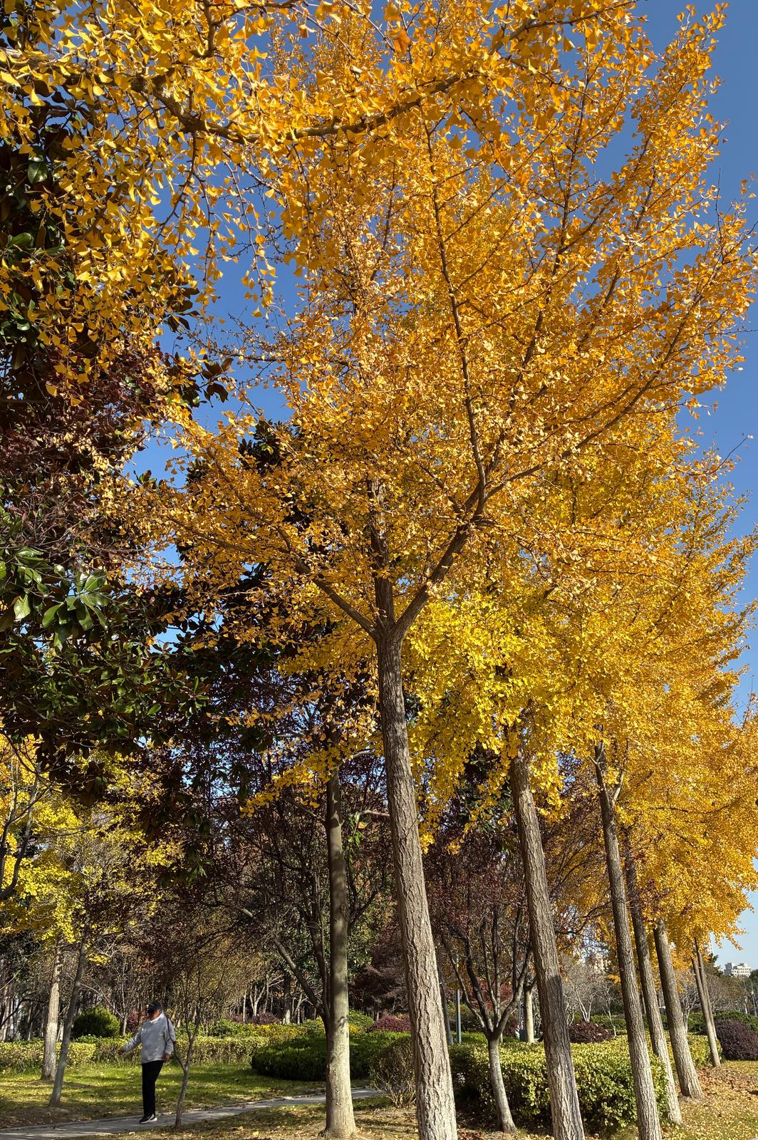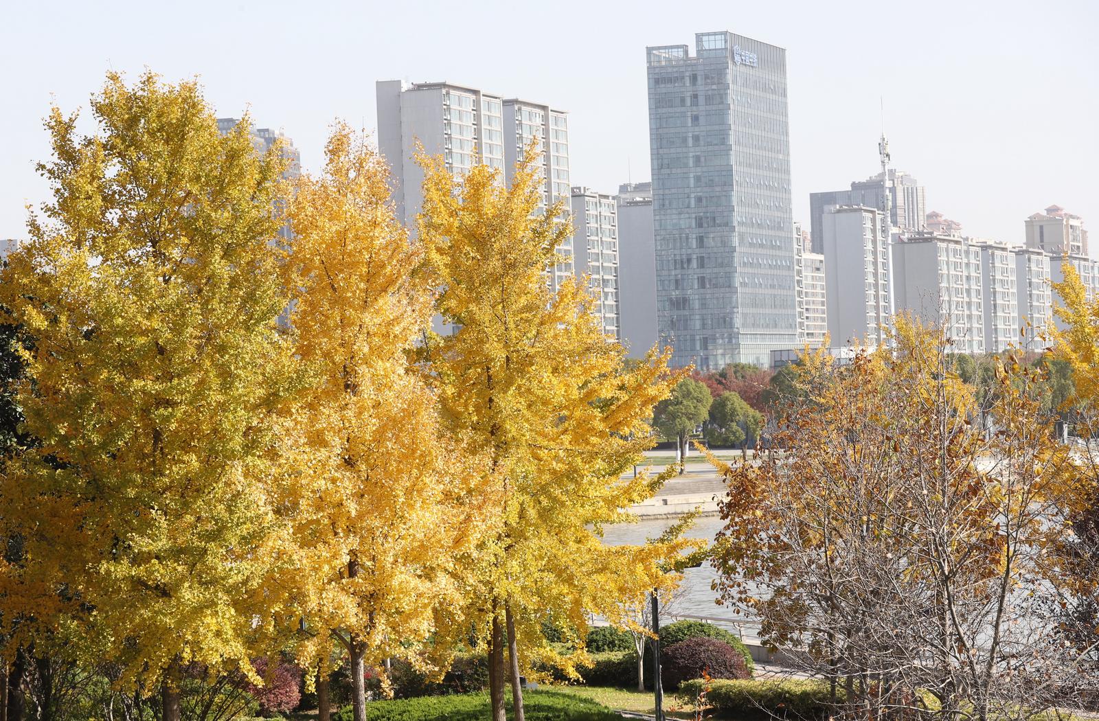 这两天,通城各处银杏陆续换上金黄色的衣装,即将迎来一年中最灿烂的时节。11月26日上午,记者在通吕运河北岸看到,经过几天的低温洗礼,运河旁绿化带上的银杏树叶已经悄悄转黄。成行排列的银杏树在阳光的映照下,宛如一条金色的长廊,美不胜收。换上金黄“秋装”的银杏与其他秋色叶树交织,共同勾画出一幅色彩斑斓的秋日画卷。