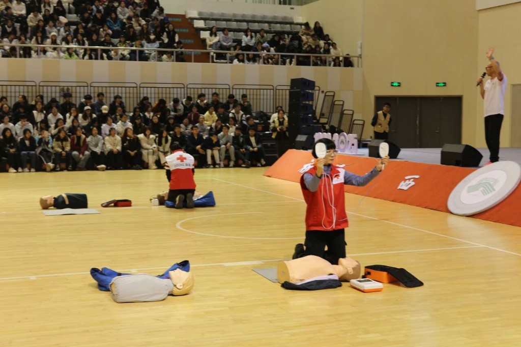 培训围绕“CPR+AED使用”展开,红十字老师紧密配合,通过理论讲授、模拟演示和互动演习,带领同学们逐步掌握技术要领。“心脏骤停后的黄金 4 分钟,是生命救援的关键窗口。”张老师指着模拟人,指尖对准胸腔位置的标识,“按压深度5~6厘米,频率每分钟100~120次,这些数字要像专业课公式一样刻在脑海里。”PPT 上滚动着真实救援案例,从校园运动意外到突发疾病急救,真实的故事让年轻的脸庞褪去了起初的轻松,取而代之的是专注的神情。
