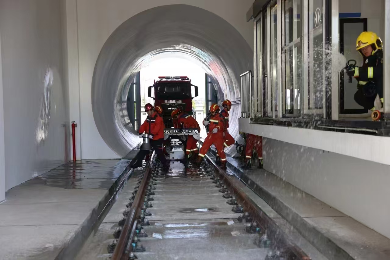 消防员与轨道抢修组联合训练