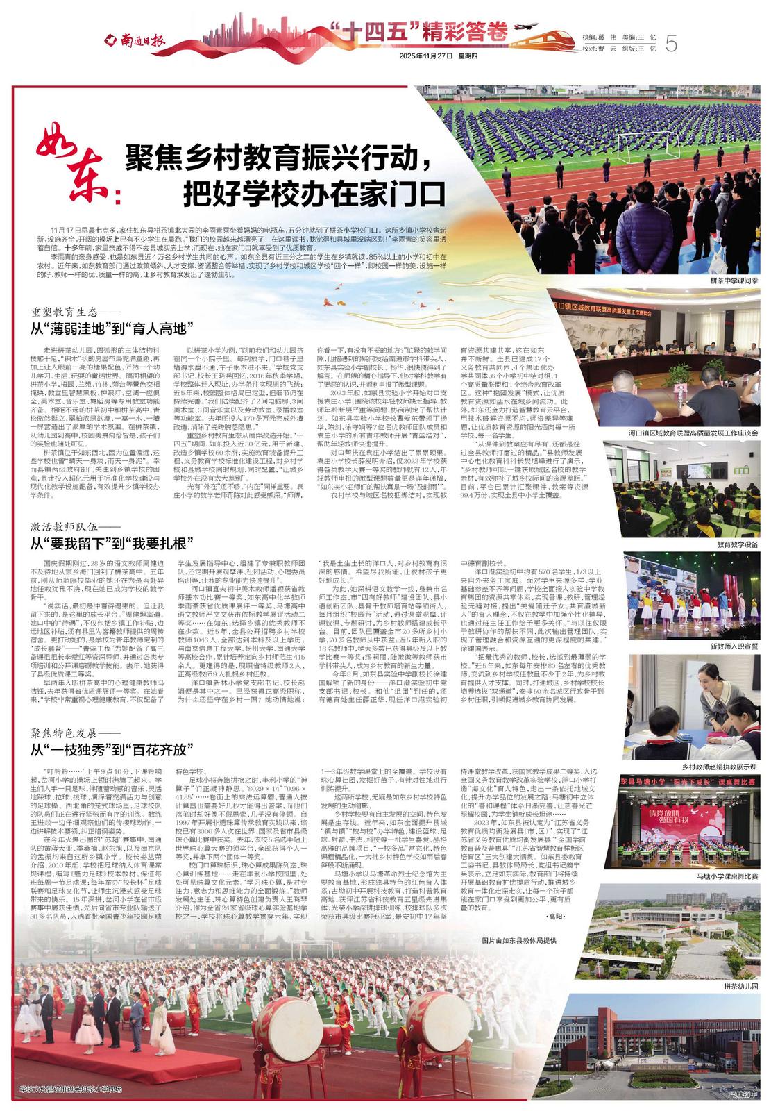 “十四五”精彩答卷 | 如东:聚焦乡村教育振兴行动, 把好学校办在家门口