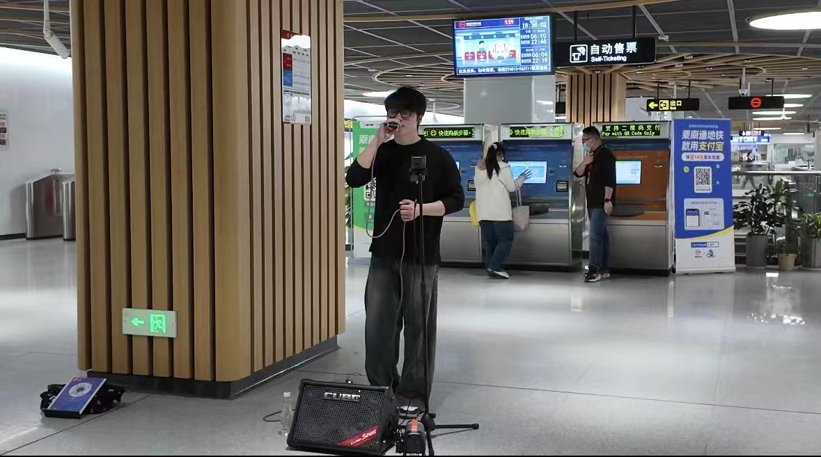 下午5点半,当暮色渐浓,滨江公园常驻歌手西瓜与南通地铁热爱音乐的员工们已就绪。一把吉他、一个麦克风,没有华丽的舞台布置,地铁通道便是最接地气的演出场地。《安和桥》的质朴旋律率先响起,瞬间吸引了刚出站的上班族和高校学子,行色匆匆的脚步纷纷放缓。