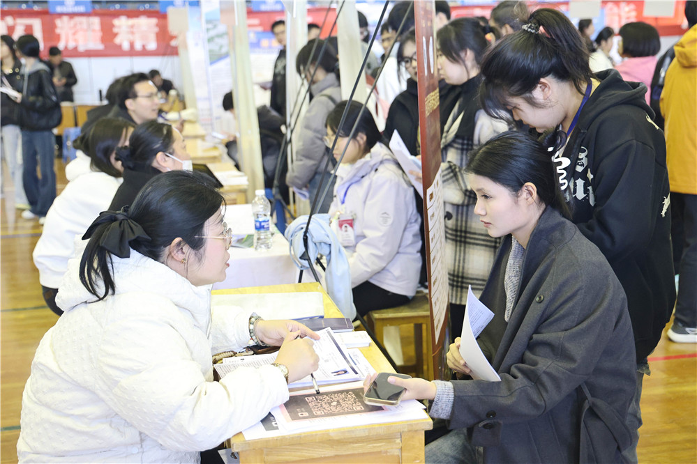 记者在现场看到,政田重工、远洋船舶、携程等知名企业成为招聘会的热门,聚集了大量学生。很多学生和招聘经理深度沟通,全方位了解企业对职工的职业规划。