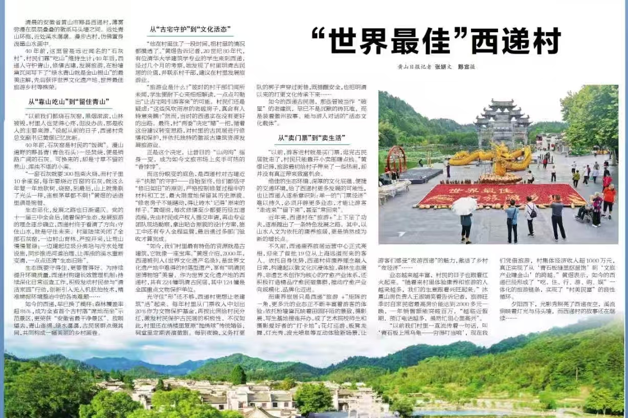 40年前,这里曾是远近闻名的“石灰村”,村民们靠“吃山”维持生计;40年后,西递人守护青山,修缮古建,发展旅游,在粉墙黛瓦间写下了“绿水青山就是金山银山”的最美注解,先后获评世界文化遗产地、世界最佳旅游乡村等殊荣。