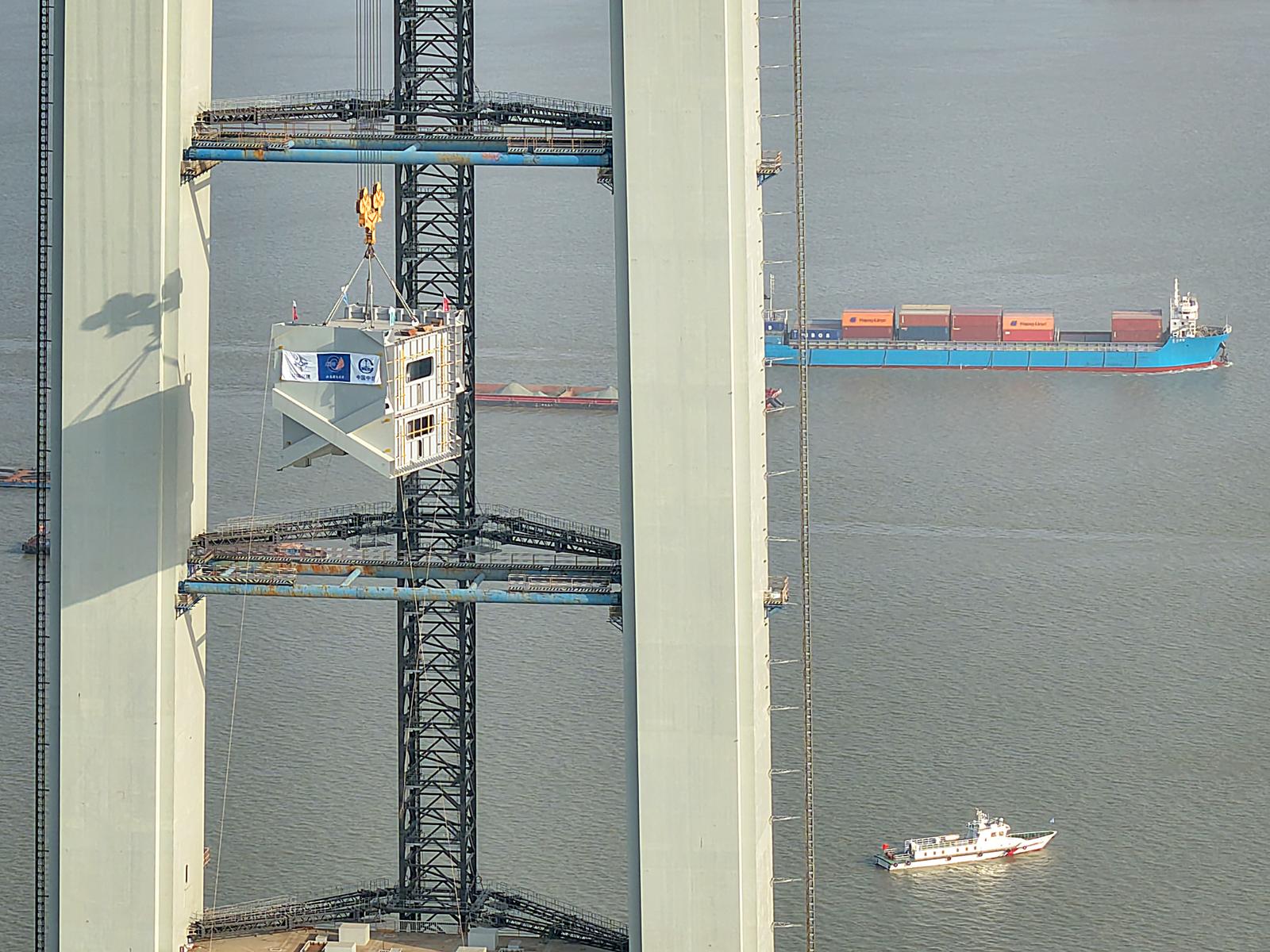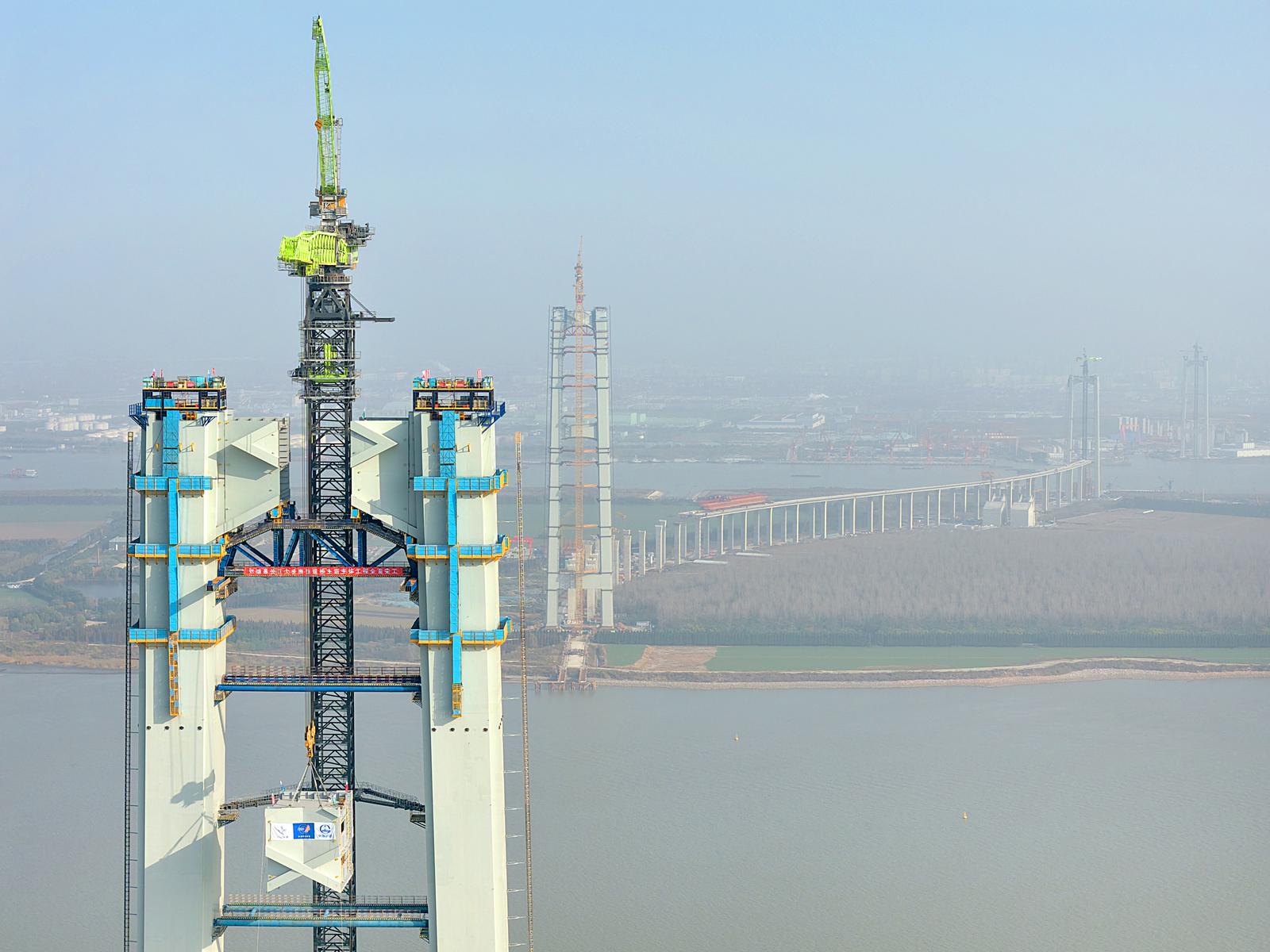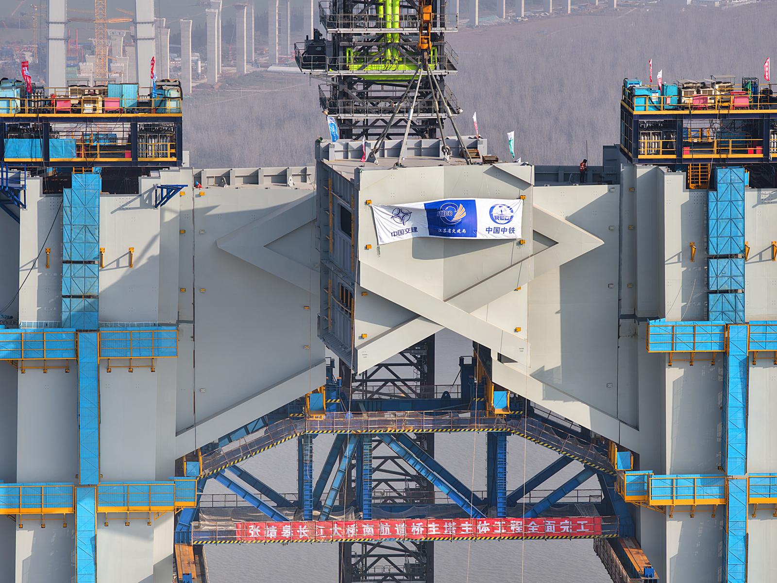 12月1日,由江苏省交通工程建设局建设、中交二航局承建的张靖皋长江大桥南航道桥南主塔上横梁精准合龙,成功实现封顶。至此,大桥南、北航道桥四座主塔主体结构全面完工,全桥建设转入上部结构施工新阶段。