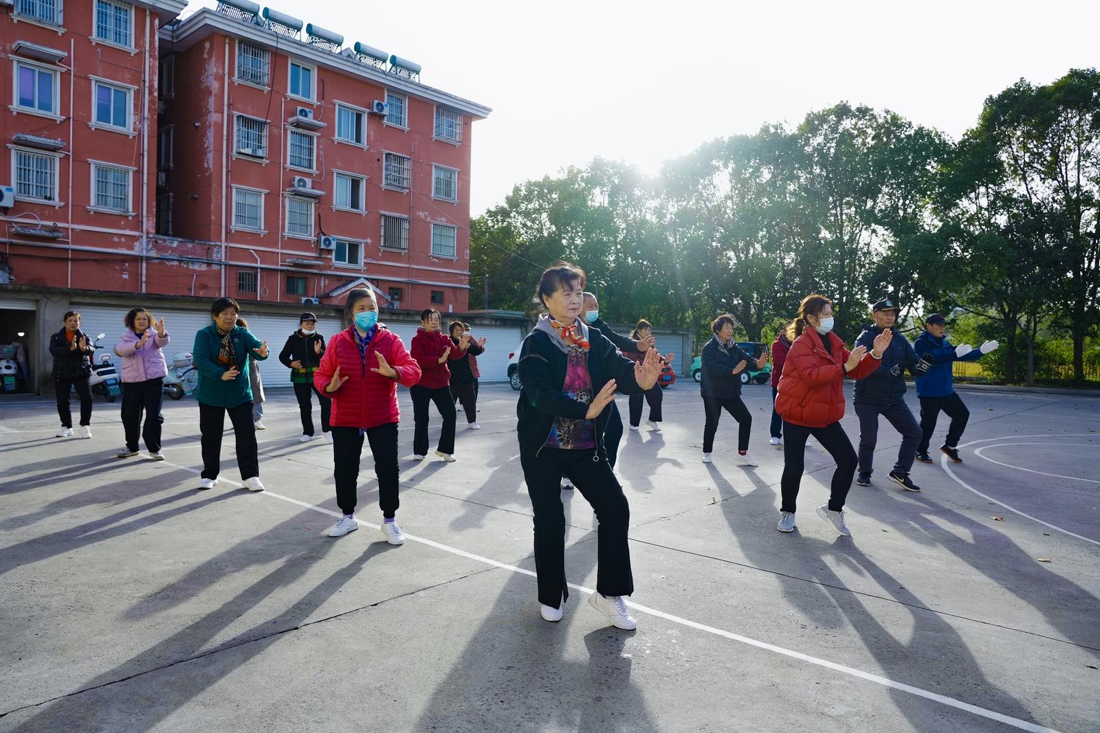 当天清晨,在悠远舒缓的乐曲声中,比赛正式开启。来自各居民小组的参赛队员们步履沉稳地列队入场。他们中既有精神矍铄的长者,也有朝气蓬勃的中青年。赛场上,褪去了平日劳作的辛勤,展现的是虚灵顶劲、沉肩坠肘的专注,是开合有序、连贯圆润的身姿。