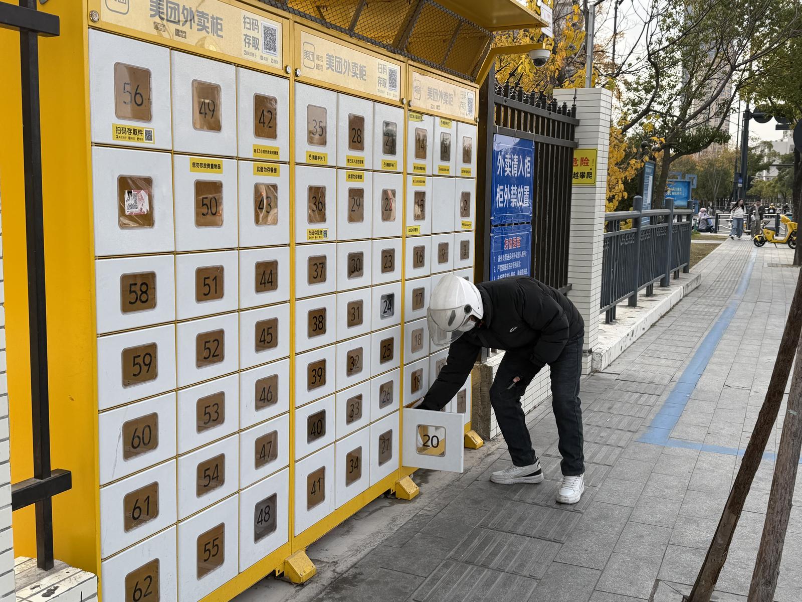 南通科技职业学院将临街栅栏墙改为外卖储存柜,学生们点外卖取餐再也不用担心丢失,“扫码取餐”提高了效率、提升了安全。