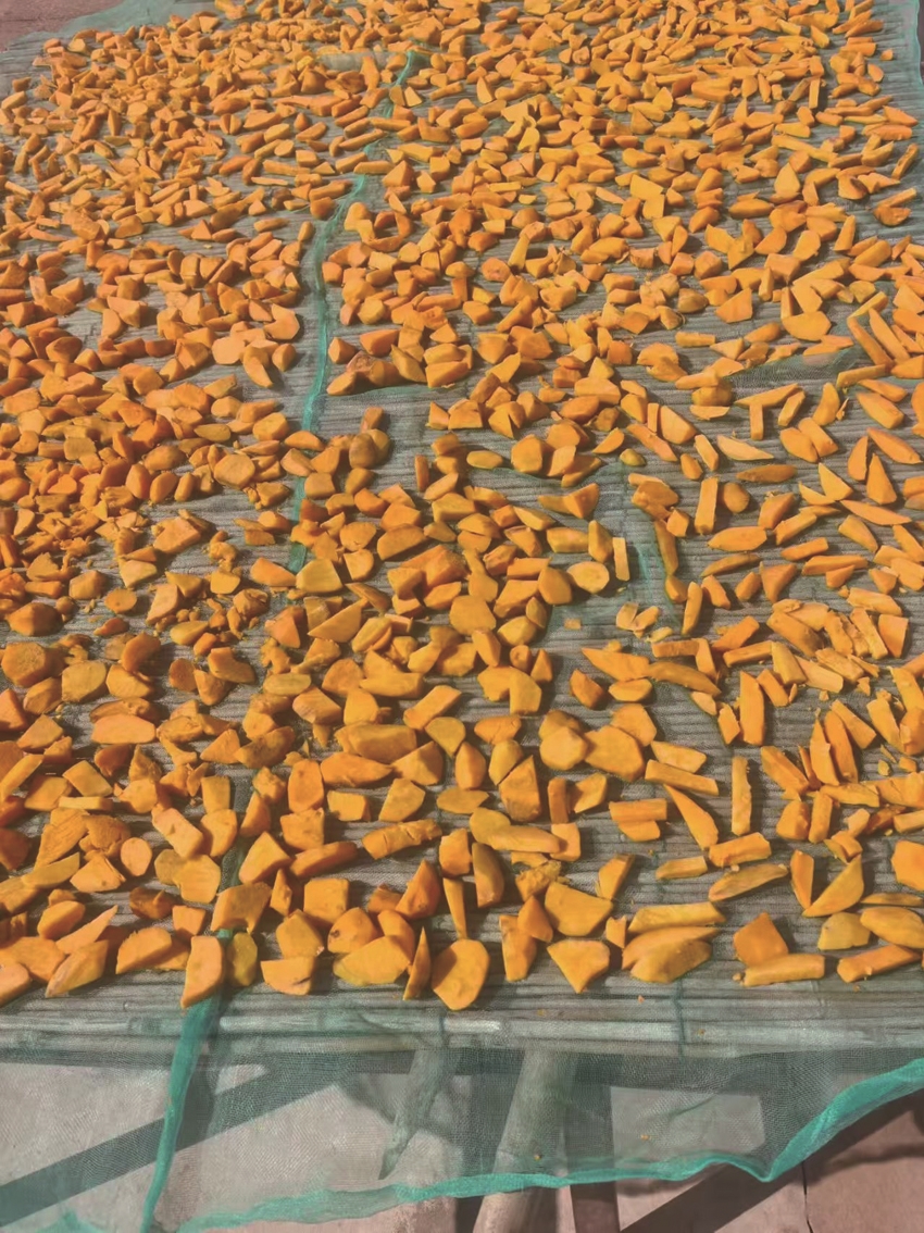 红薯,启海沙地方言叫“番芋”。番芋对温度、湿度、通风特别敏感,贮藏过冬比较繁难。因此,本地不少人家选择晒番芋干。一种是将番芋切片,直接晒干,这是“白香番芋干”,烧饭煮粥时可放几片。另一种是将番芋切片,放开水里焯,将熟时捞出,再晒干。这是“焯番芋干”,春节前用细沙炒,与炒蚕豆、炒花生一样,都是过年的零食。