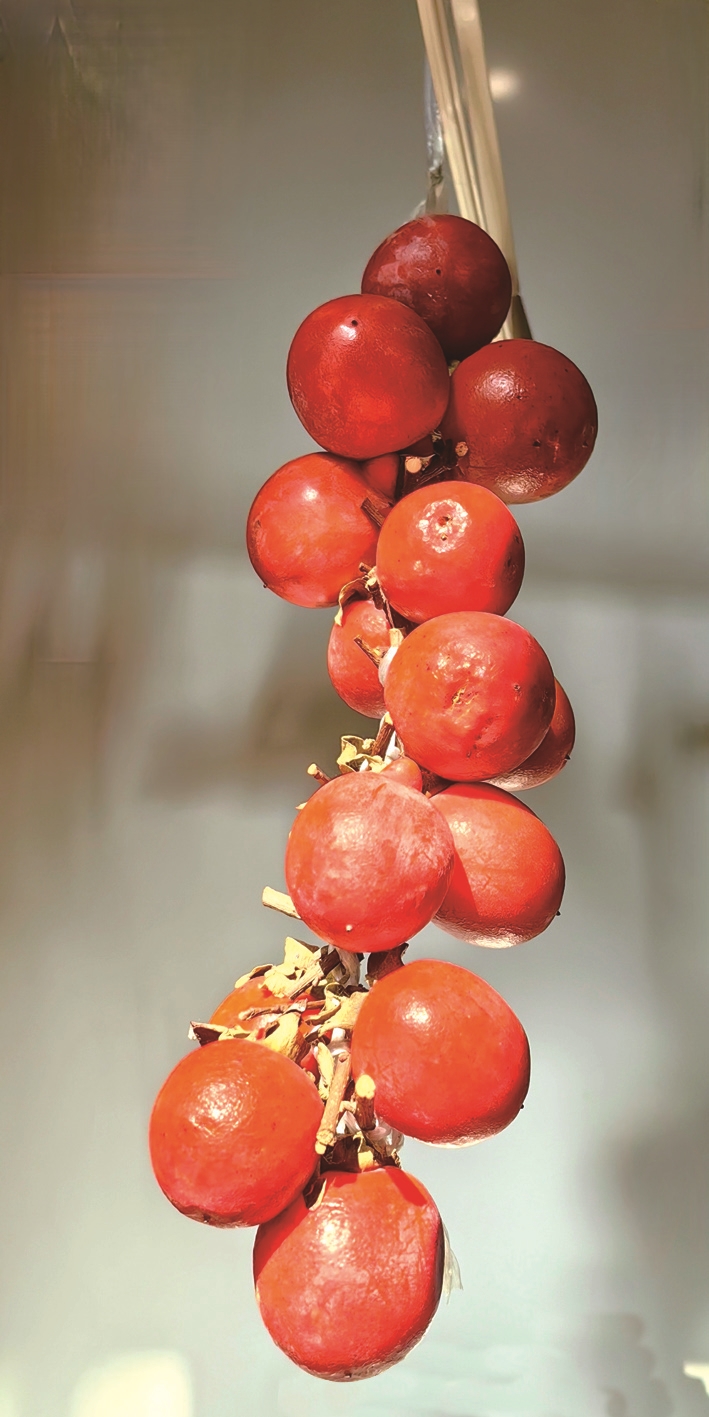 周末出门踏秋,看到有小贩在卖柿子,秋天卖柿子不稀奇,但这个小贩的柿子不是论斤卖,而是论串,10块钱一串。我看着有趣好玩,就买了一串,带回家后挂在阳台上。